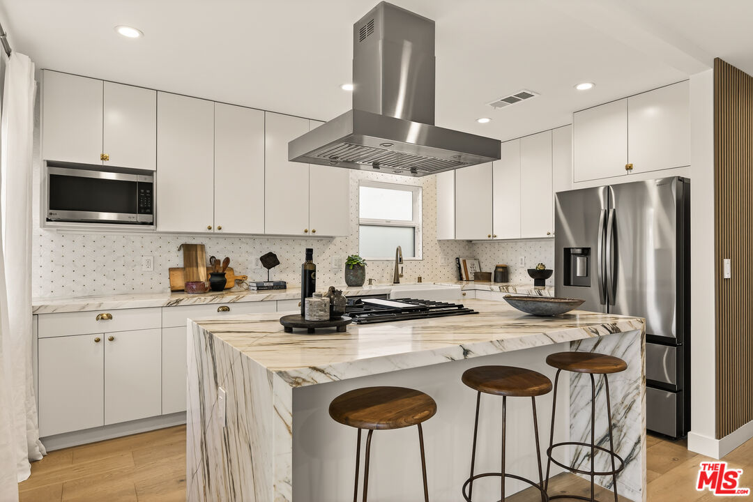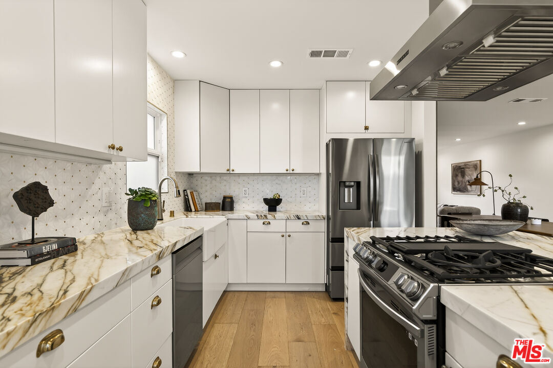 Set at the end of a quiet cul-de-sac, this beautifully appointed 3-bedroom, 2-bath home offers a rare blend of thoughtful design, comfort, and an exceptional Venice location. Clean modern lines are balanced by warm, inviting finishes, creating spaces that feel both refined and easy to live in. Filled with natural light, the interiors unfold with an effortless flow, from the open-concept living and dining areas to a stylish chef's kitchen and beautifully finished, spa-inspired bathrooms. Every room feels considered, with a calm, understated palette and a sense of warmth that makes the home as welcoming as it is polished. The living spaces are designed for both everyday ease and relaxed entertaining, while the seamless connection to the outdoors adds to the home's easy, airy feel. Outside, the beautifully landscaped backyard offers a private retreat with plenty of room to lounge, gather, dine, or simply enjoy the quiet surroundings. A long driveway and detached 2-car garage add flexibility and convenience, completing the property with the kind of practical comfort that is increasingly hard to find. Just seconds from Penmar and Rose Avenue, and only minutes to Main Street and Abbot Kinney Boulevard, this home is perfectly positioned near some of the Westside's most beloved restaurants, coffee shops, boutiques, and neighborhood favorites. Warm, stylish, and ideally located, it captures the best of Venice living.
