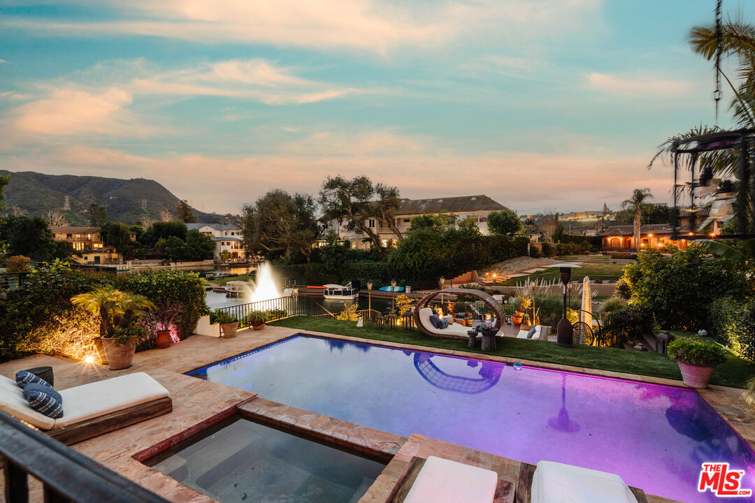 Nestled in the exclusive enclave of Toluca Lake, this elegant 6-bedroom, 4.5-bathroom residence offers unparalleled luxury and sophistication. With a sprawling 5632 SqFt of living space, this home boasts breathtaking views of the tranquil Toluca Lake and majestic mountains. The grandeur of this home is accentuated by the abundance of natural light that fills every corner, creating a warm and inviting ambiance. Step outside onto the balcony to savor the captivating lake vistas or take a dip in the saltwater pool for a refreshing escape. The private BBQ area by the lake offers a perfect setting for outdoor gatherings. Inside, the living room and primary bedroom feature cozy fireplaces, creating a serene atmosphere. The well-appointed kitchen features stainless steel appliances, perfect for culinary enthusiasts. Entertain guests in the formal dining room or unwind in the media/recreation room. The primary suite offers a walk-in closet and a private outdoor space, providing a serene retreat. With only 34 homes on the lake, this is a rare opportunity to live in a piece of Toluca Lake's coveted waterfront. Experience luxury living at its finest in this remarkable Toluca Lake residence.