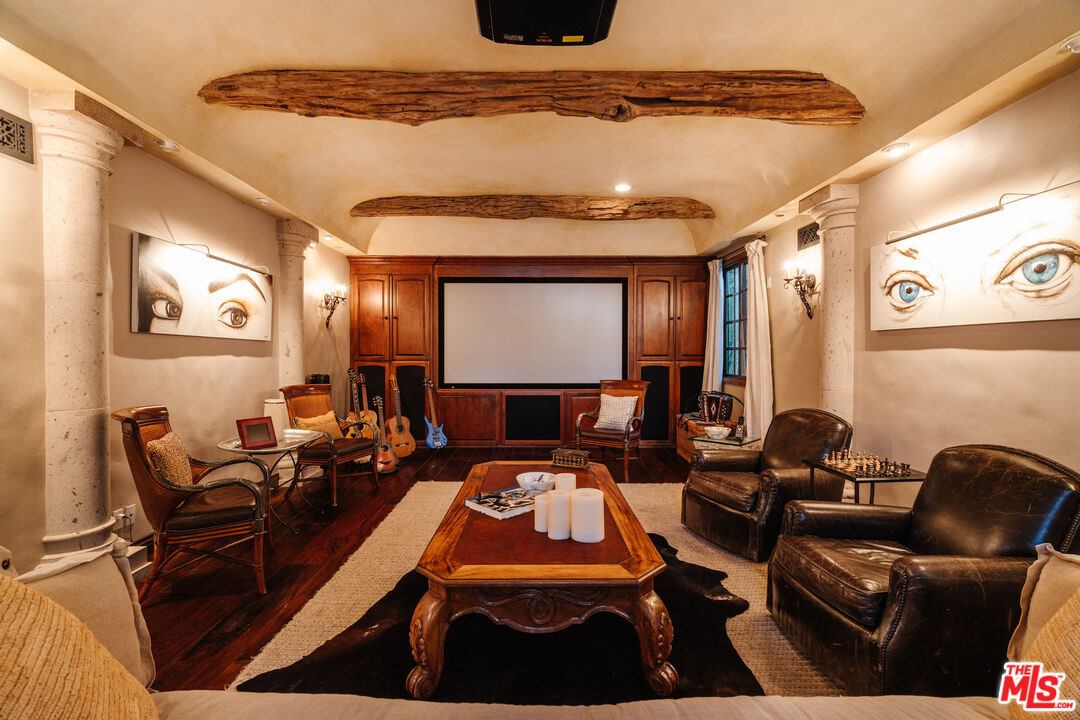 - Interior Features: Bar, Bidet, Built-Ins, 220V Throughout, Beamed Ceiling(s), High Ceilings (9 Feet+), Pre-wired for high speed Data, Pre-wired for surround sound, Recessed Lighting, Storage Space, Turnkey