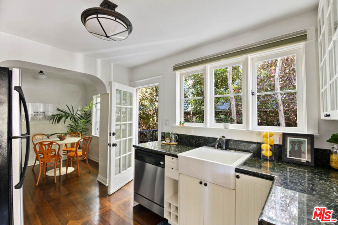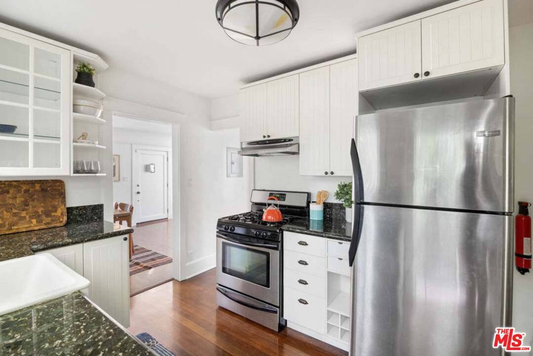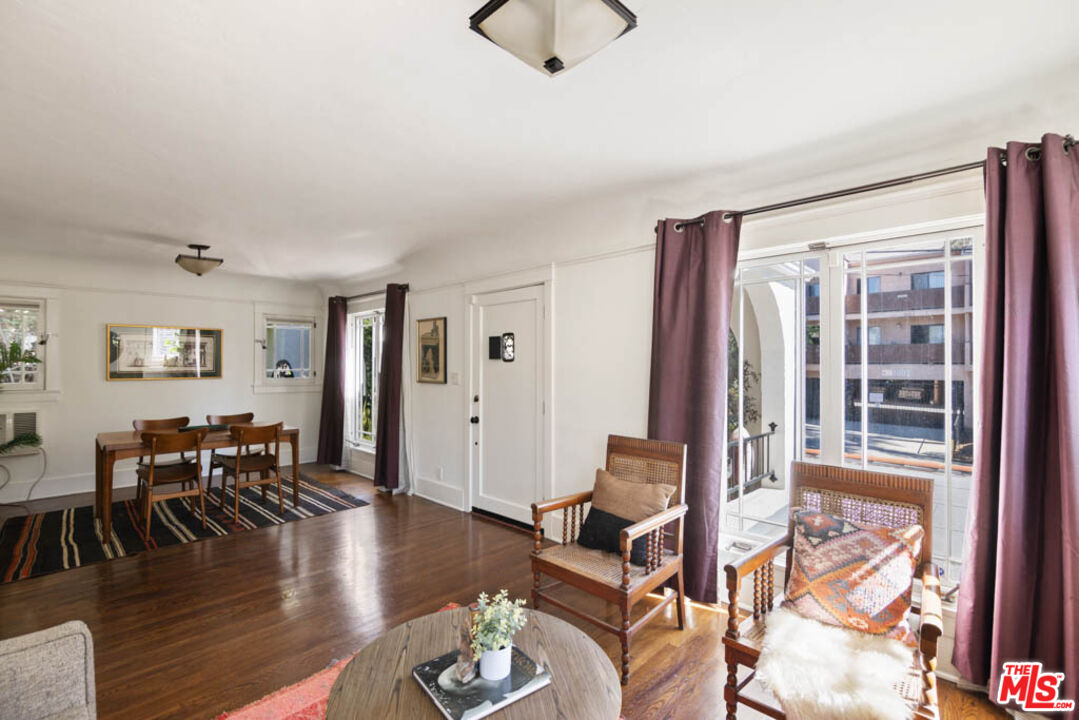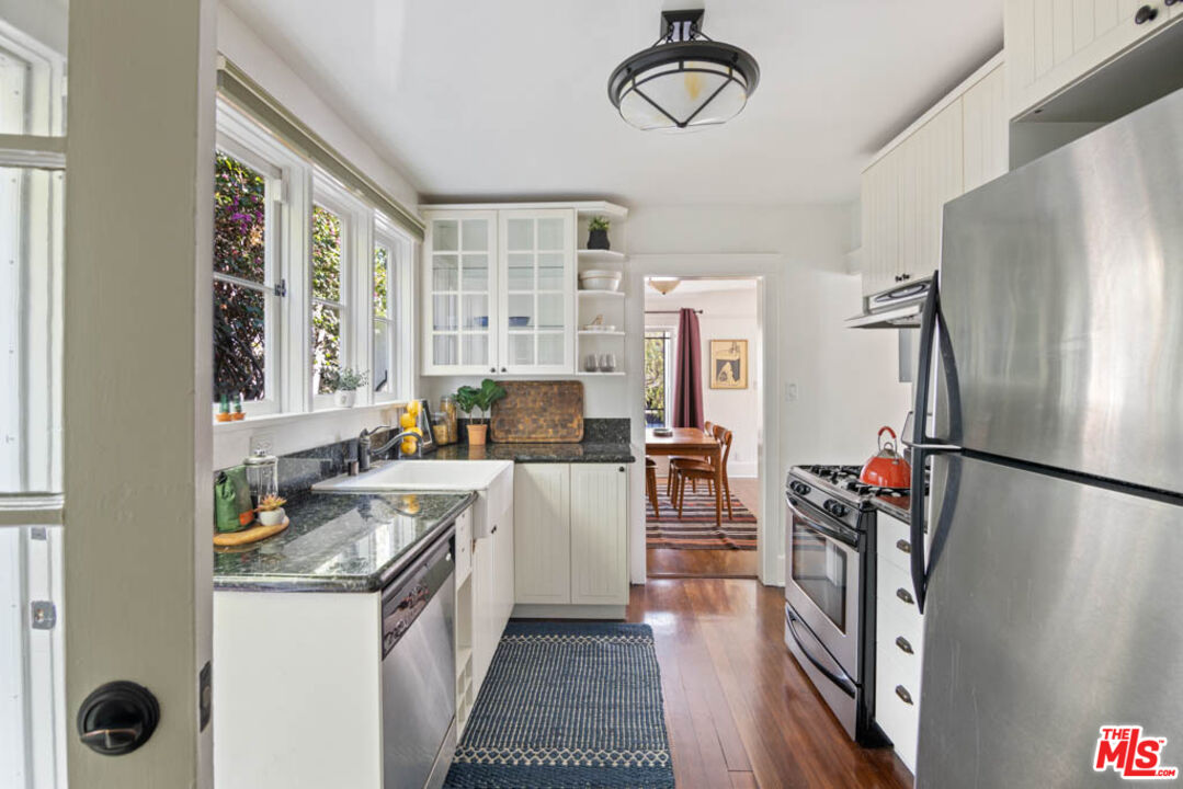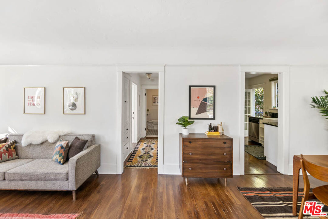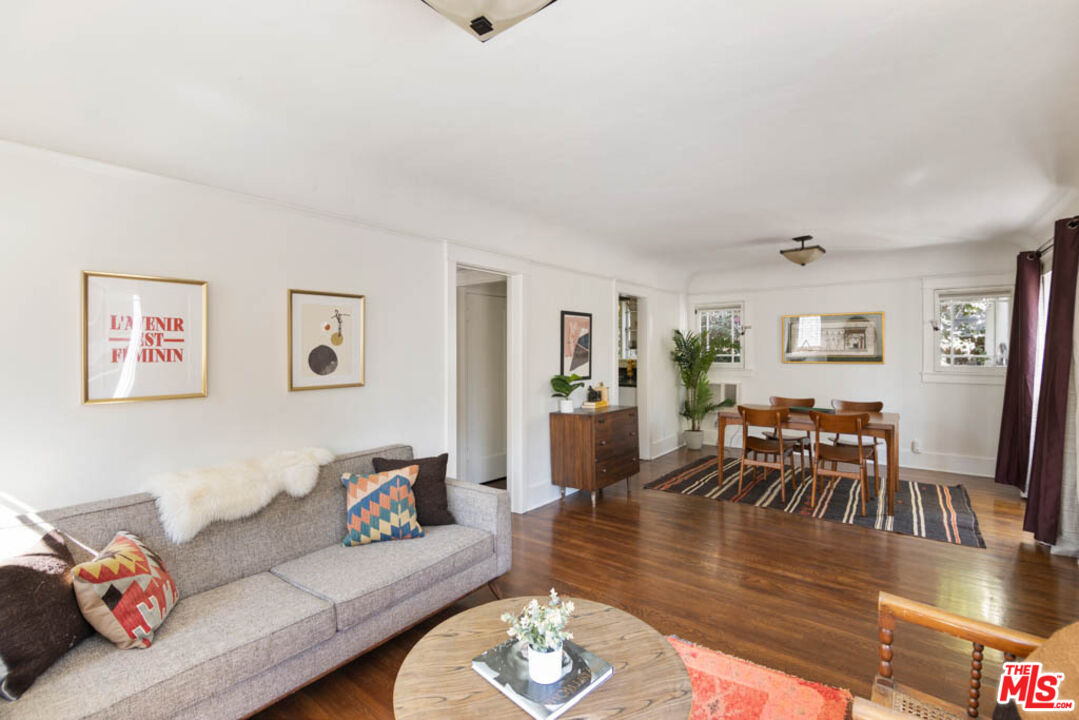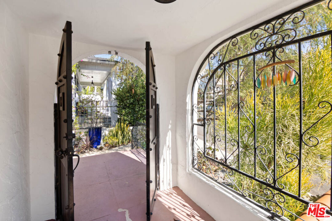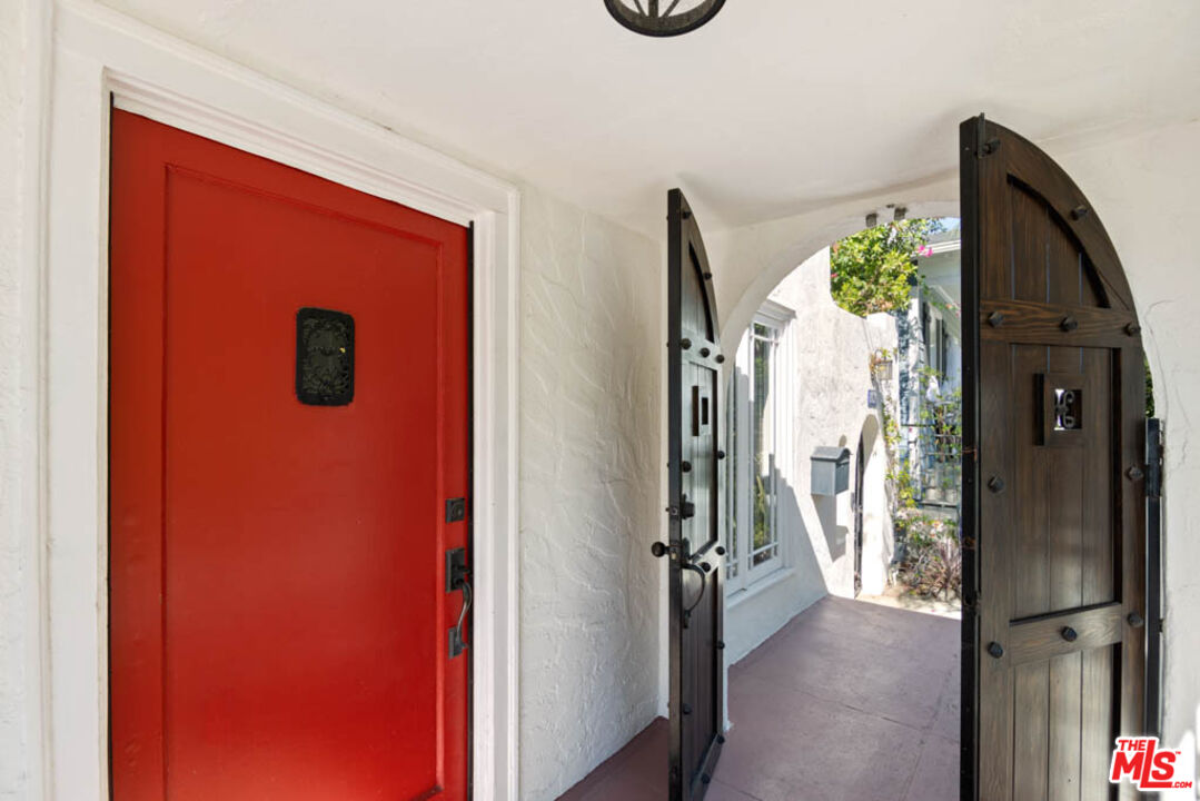 This enchanting 1930s Spanish Duplex in Silver Lake, just one block from vibrant Sunset Junction, blends timeless character with exceptional indoor-outdoor living. Set behind mature landscaping for added privacy, the property offers a rare urban retreat rich in charm and flexibility. Currently configured as a duplex with one 2-bedroom, 1-bath unit and one 3-bedroom, 2-bath unit, it presents a unique opportunity for investors owner-users, or those seeking a flexible living arrangement, with the potential to be converted into a spacious single-family home. The front unit (2 bedrooms, 1 bath) welcomes you through an arched entry and handcrafted wood double doors with decorative iron studs. Inside, classic character is expressed through hardwood floors, archways, built-ins, and a vintage decorative tile fireplace. Natural light fills the space throughout. A third-level bedroom offers a unique retreat with sweeping city and Hollywood Hills views. The rear unit (3 bedrooms, 2 baths) offers generous split-level living with hardwood floors and arched openings throughout. Two bedrooms are positioned upstairs, both overlooking the backyard, while the main level features an additional bedroom with comfortable living spaces. The kitchen blends vintage charm with updates, featuring stone countertops, a farmhouse sink, glass-front cabinetry, and a classic O'Keefe & Merritt range. A built-in breakfast nook framed by the greenery, with views and direct access to the backyard. The expansive backyard is a true Silver Lake oasis with multiple outdoor areas, including a pergola-covered lounge with spa, a lawn framed by mature hedging, fruit trees, and a gravel dining terrace ideal for al fresco gatherings under caf lights. Previously featured in the online edition of Architectural Digest, the property is moments from Silver Lake's vibrant dining and cafe scene, with local favorites like Intelligentsia, Erewhon, Sqirl, and Cafe Tropical nearby. Contact agent regarding current tenants/leases