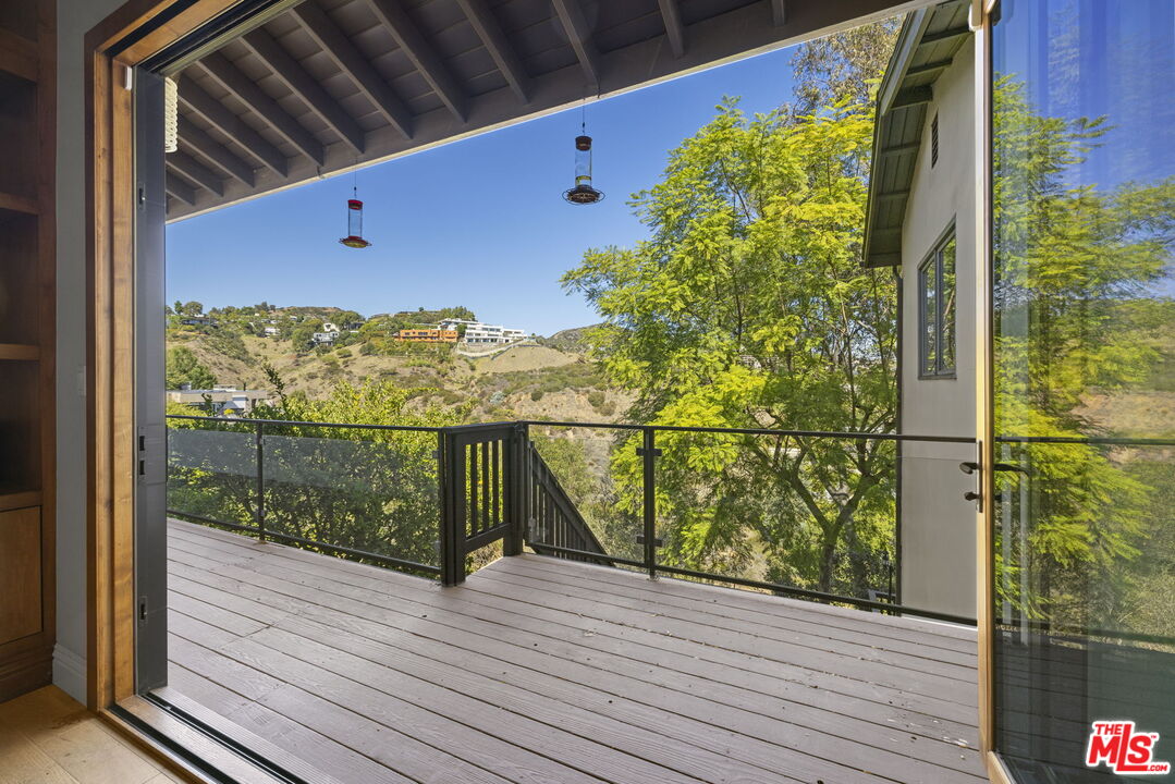 Privately tucked away behind lush hedges and a secure gated entry, 1018 N Tigertail Road is a rare contemporary sanctuary on one of Brentwood's most coveted streets. Designed for privacy and connection to nature, the home captures breathtaking south-east views from the Getty, across Los Angeles, and all the way to the coastline, a constant reminder of its extraordinary setting. The main level welcomes you with open, light-filled spaces designed for both comfort and entertaining. The living and family rooms open to an expansive terrace that invites easy indoor-outdoor living. The kitchen anchors the main floor with generous counter space and picture-perfect Getty and city views. The primary suite is a peaceful retreat with private patio access, dual closets, and an ensuite bath designed for calm and comfort. A secondary bedroom with its own ensuite bath provides an equally private space for guests or family. On the lower level, two additional bedrooms continue the home's flexibility, all while maintaining the same stunning outlooks that define the property. Just beyond the main lower deck, a detached studio expands the possibilities, ideal for a gym, home office, guest suite, or artist's retreat. Surrounded by lush landscaping and multiple outdoor viewing and entertaining areas, this residence embodies the effortless indoor-outdoor lifestyle that defines Los Angeles. Expansive views unfold from every room, blurring the line between nature and refined comfort. Every space invites relaxation, reflection, and connection to the serene setting that makes Tigertail Road one of Brentwood's most prestigious addresses.
