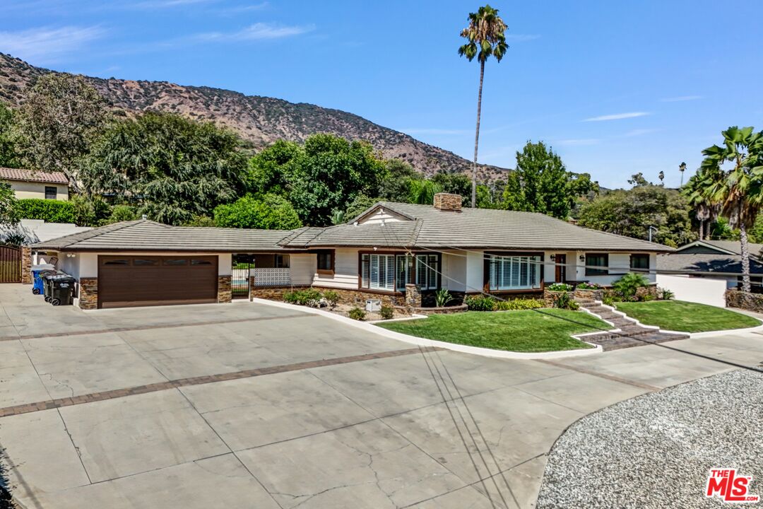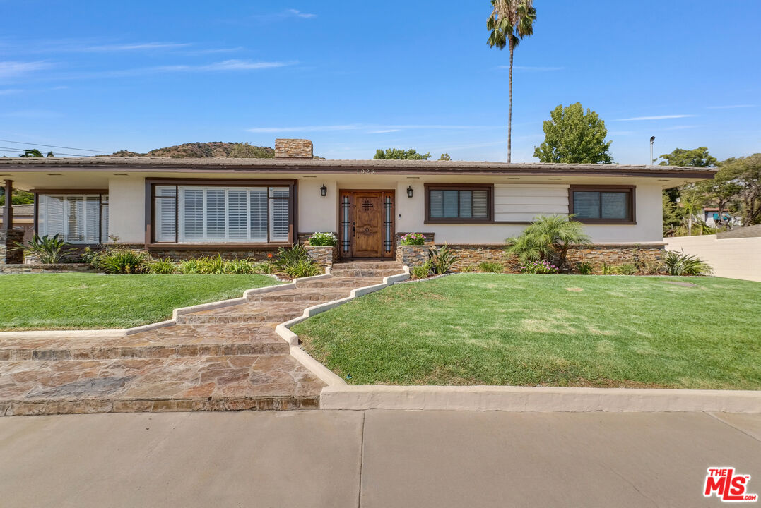 Welcome to 1025 W. Sierra Madre Ave, a single-story Glendora gem set on a rare half-acre lot (21,567 sq. ft.). This 3-bedroom, 3-bath home also features a den and bonus room, offering plenty of flexible living space. As you drive up the expanded driveway perfect for RV parking or even a covered carport you'll immediately notice the stunning views stretching across the Las Colinas and Rosedale communities all the way to the historic Dhammakaya Temple. Step through the southern-facing front door into a bright, open floor plan highlighted by crown molding, chestnut hardwood floors, and a welcoming living room with a stone fireplace. Fresh comfort abounds with a brand-new central AC system and two brand new water heaters. The dining area captures panoramic views, while the kitchen offers brown maple wood floors, abundant cabinetry, and a breakfast bar that flows into the den, complete with beamed ceilings and a second fireplace. The oversized primary suite is a retreat of its own, with serene pool views and a spa-like en-suite bath. Outdoors, your private oasis awaits a 10-foot Olympic-style pool with diving board, outdoor shower, and a covered patio. The spacious lot also provides potential for an ADU, making it ideal for extended living or investment. With an attached 2-car garage and extended parking for all your guests and close proximity to top schools such as St. Lucy's Catholic School, great parks, and shopping, this turnkey home combines lifestyle, location, and luxury in one rare find.