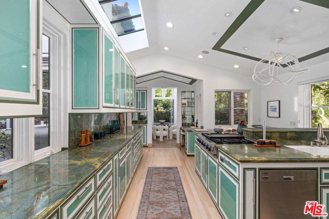 One of only two custom-built residences within the prestigious Century Woods community not constructed by the original developer, this 5,046-square-foot luxury estate presents a rare opportunity for discerning buyers seeking privacy, craftsmanship, and architectural distinction in Los Angeles. Designed as an authentic Mediterranean-inspired villa, the home offers three expansive primary suites, three and one-half bathrooms, and a thoughtfully curated floor plan that balances open, light-filled living spaces with moments of intimacy and retreat. Elegant proportions and refined sightlines create a residence that feels both grand and livable. Every detail reflects exceptional craftsmanship. A refined palette of limestone, granite, and rich hardwood flooring is complemented by soaring ceilings, skylights, and custom cabinetry, creating a timeless aesthetic rooted in quality and restraint. Natural materials and muted tones allow texture and light to take center stage, delivering a sense of understated luxury throughout. Sunlight pours through expansive windows and overhead skylights, enhancing the seamless connection between indoor and outdoor living. The integration of light, air, and landscape reinforces the home's European villa character, while architectural detailing and careful material selection ensure comfort, warmth, and enduring elegance. More than a residence, this is a bespoke luxury estate a masterful blend of authenticity and sophistication, offering the charm of a European villa, the precision of fine craftsmanship, and the rare distinction of a custom home within one of Los Angeles' most exclusive gated communities.