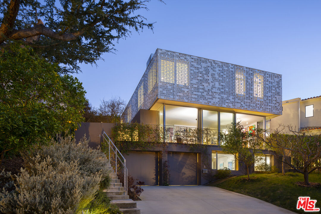 Bob Hale, FAIA, Architect | House of Love, 2011. Conceived by RIOS (formerly Rios Clementi Hale Studios) partner Bob Hale as his family's own home, House of Love (Beit Ha-Ahava) is both domestic architecture and manifesto: a study in permeability, authorship, and the expressive potential of building envelope. Set on a hillside in Cheviot Hills, the 5-bedroom, 4-bath home is organized as a series of interlocking volumes structured around light and sectional movement. The plan privileges continuity over spectacle open living and dining areas extend directly to the garden through floor-to-ceiling sliders, establishing a calibrated dialogue between interior space and landscape. The upper level is wrapped in a veil of perforated, corrugated aluminum panels etched with the word ahava (love). Operable and finely detailed, the screen functions simultaneously as brise-soleil, privacy scrim, and conceptual armature. Throughout the day, shifting light animates the interiors, casting patterned shadows that register time and orientation. Material choices are restrained and deliberate: smooth plaster, aluminum, glass, and wood compose a tactile but disciplined palette. The Poggenpohl kitchen integrates seamlessly into the main living volume. Upstairs, the primary suite is conceived as a quiet retreat, with filtered light and garden outlooks. A lower level with separate access accommodates guest rooms, studio, or work space, reinforcing the home's flexibility. Landscape operates as extension rather than backdrop native meadow planting in front, a lap pool and spa to the rear continuing the project's exploration of enclosure and openness. Widely published, including coverage in The New York Times, the house occupies a distinctive position within contemporary Los Angeles residential architecture: personal in origin, rigorous in execution, and unapologetically architectural.