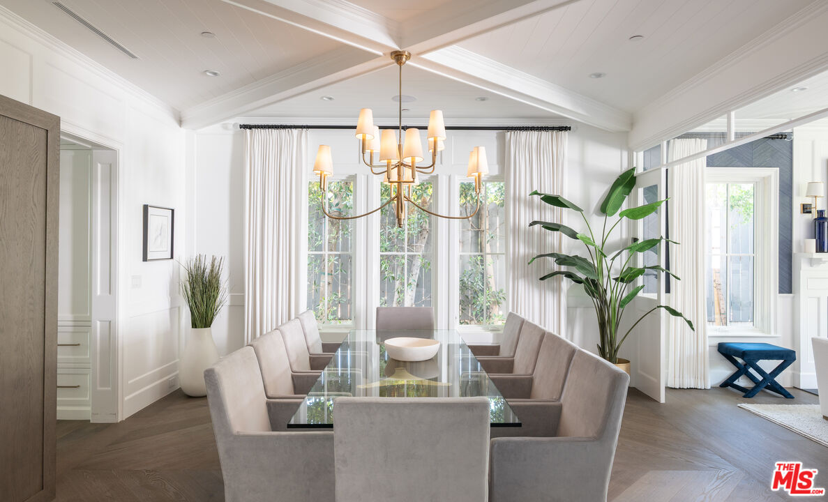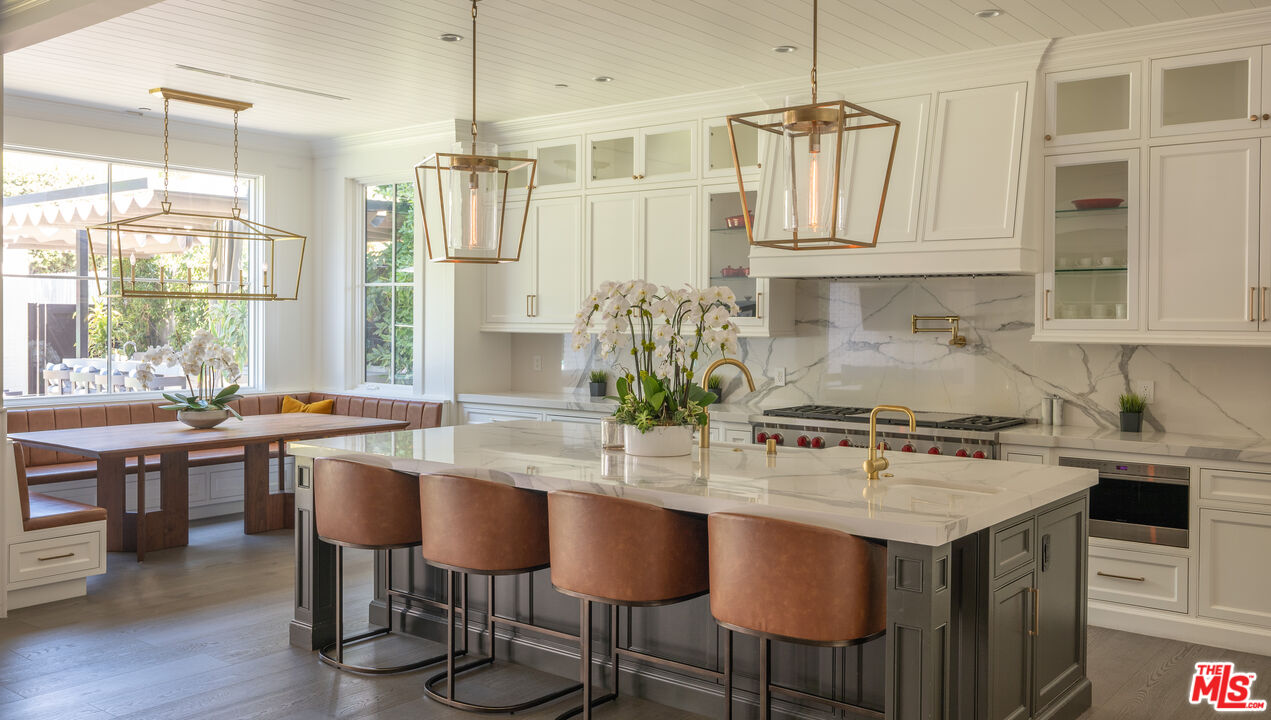Set on an expansive 10,802 sqft lot in a prime Toluca Lake, this exceptional custom built traditional home offers the pinnacle of sophisticated California living. Designed and constructed by the acclaimed Hunter Homes LA, the home features 5 bedrooms, 6 bathrooms, along with a separate pool house with its own bathroom. The Cape Cod inspired residence masterfully combines timeless design with modern living. A dramatic entry hallway opens to an expansive open-concept layout, seamlessly connecting the formal living and dining rooms, home theater, and generous family room. The gourmet kitchen is thoughtfully appointed with Wolf and Sub-Zero appliances, dual dishwashers, porcelain countertops and backsplash, a built-in microwave, wine refrigerator, and an impressive center island with dual farmhouse sinks and bar seating. Upstairs, a luxurious primary retreat showcases custom wood paneling, designer lighting, a fireplace, dual walk-in closets, and a spa-like primary bath. Additional amenities include Control4 smart home automation, three fireplaces, a temperature-controlled wine cellar, custom built-ins, surround sound, oak hardwood flooring, and an array of refined finishes throughout. Walls of floor-to-ceiling pocket glass doors lead to a beautifully landscaped entertainer's backyard featuring a covered patio, pool & spa, fire pit, full barbecue island, and spacious rear and yards.