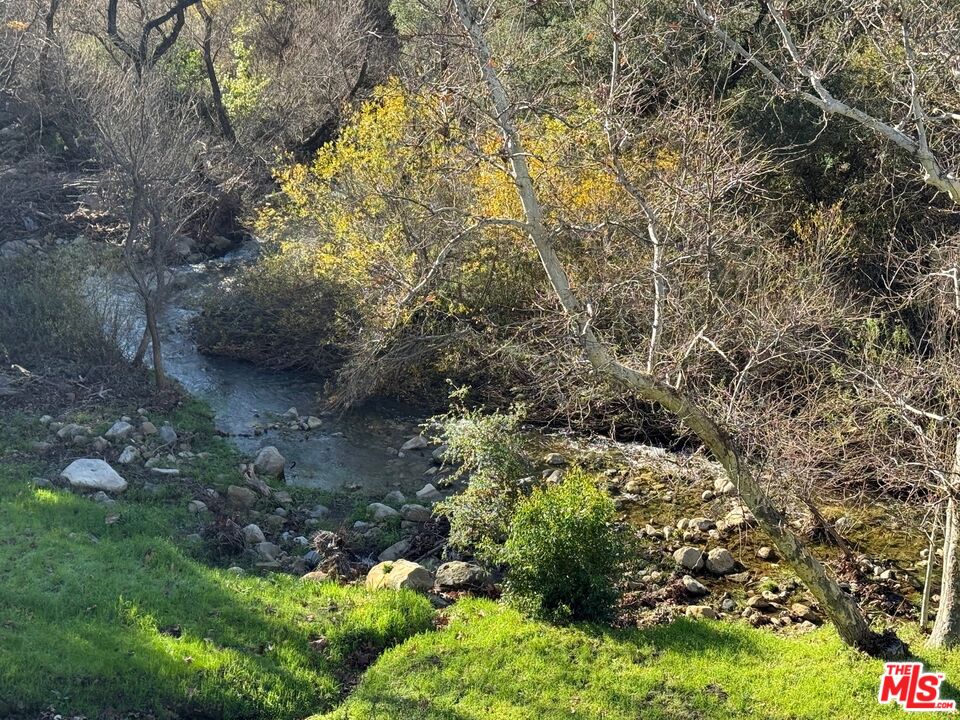 Tucked into the heart of the Santa Monica Mountains, this enchanting Mediterranean estate is a rare sanctuary where luxury and nature exist in perfect harmony. Set on 2.8 private acres along an exclusive gated lane in Monte Nido, shared with only two other prestigious estates, this serene retreat is close to acres of parkland and miles of trails - yet just minutes from iconic Malibu beaches. The setting is truly magical. Sweeping panoramic mountain views glow gold at sunset, while morning clouds roll gently over the ridgelines. A seasonal creek winds through the property, framed by mature oaks, California sycamores, citrus, and plum trees. Hummingbirds flit through the gardens, hawks soar above, and fish glisten in the entry fountain, creating a peaceful connection to nature. A grand courtyard entry opens to a warm, refined interior with soaring ceilings, Murano hand-blown glass lighting, and wide-plank hand-skived white oak floors throughout. The living room flows seamlessly to a large view terrace for indoor-outdoor living, while the elegant dining room features sculptural lighting inspired by Venice's sky and sea. The light-filled kitchen overlooks the mountains and BBQ terrace and features an island, Thermador appliances, and a cozy seating area with TV. The main-level primary suite is a tranquil retreat with pool and spa views, a spa-like bath with soaking tub and separate shower, and a walk-in closet. A second bedroom or office and full bath complete the main level. Upstairs are three additional bedrooms with stunning views, two full baths, a laundry room, and extra storage. Thoughtfully upgraded with premium systems and finishes, the home is conveniently located near Calabasas shopping, the 101, and within the award-winning Las Virgenes School District, close to Viewpoint, Muse, and Pepperdine University. A peaceful mountain escape offering refined living, natural beauty, and effortless access to the coast without the pace of city life.