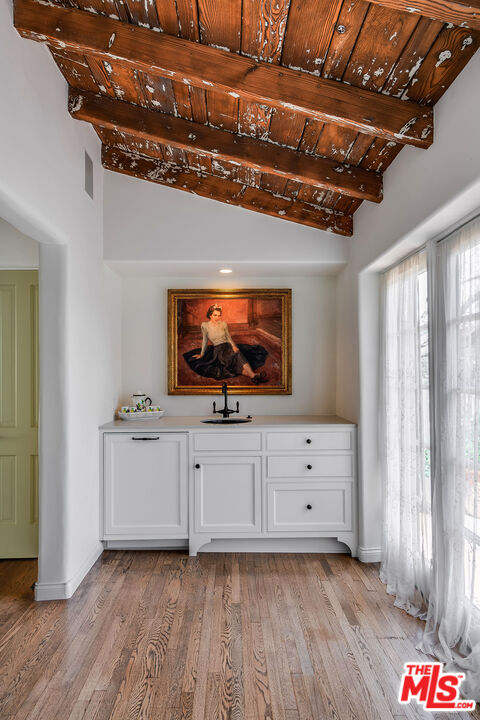 - Interior Features: Bar, Built-Ins, Beamed Ceiling(s), Detached/No Common Walls, High Ceilings (9 Feet+), Plaster Walls, Turnkey