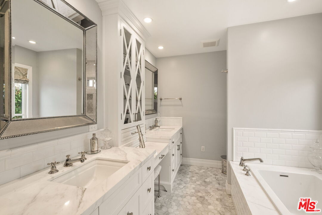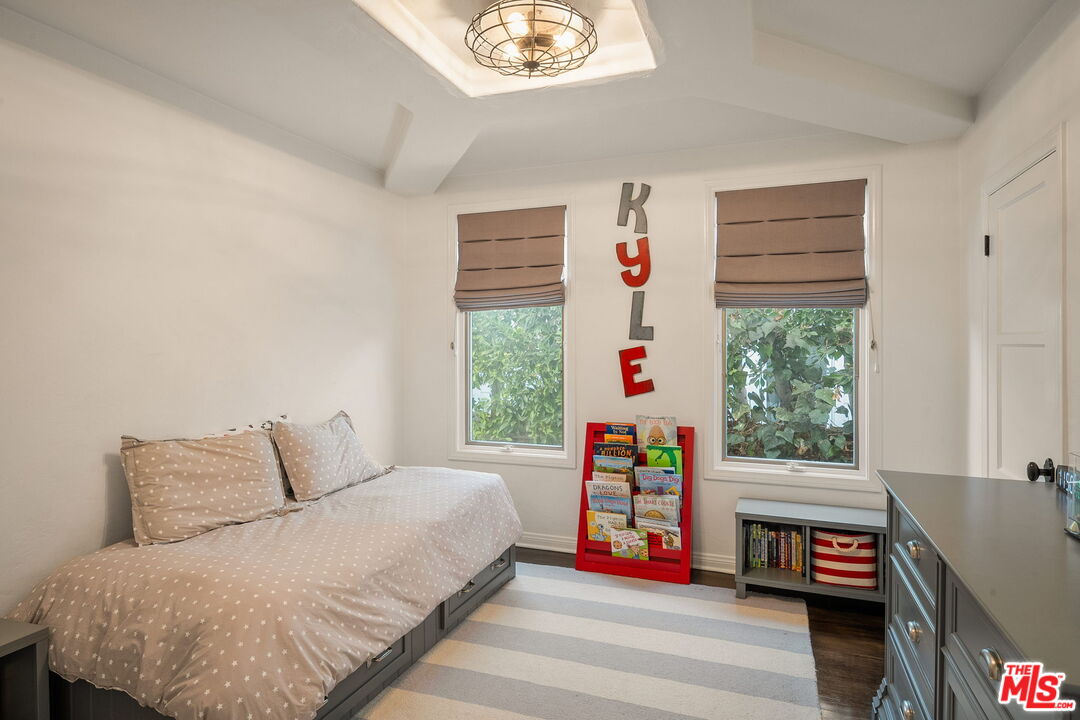 Nestled on a quiet, tree-lined street in prime Westwood, this impeccably remodeled 1931 single story Spanish residence offers the perfect blend of timeless architectural character and elevated modern living. From the moment you step inside, the home welcomes you with an abundance of natural light, rich hardwood floors, and an inviting sense of scale that feels both sophisticated and comfortable. The spacious living room is anchored by a stunning fireplace and framed by gorgeous beamed coved ceilings, an authentic design element that honors the home's heritage while adding dramatic visual warmth. The adjoining formal dining room flows effortlessly into the remodeled kitchen, where thoughtful updates include quality cabinetry, quartz counters, premium appliances, and a center island for casual dining, creating a space that is both functional and beautifully finished. Right off of the kitchen, the heart of the home expands to a family room with custom built-ins and a casual breakfast area with easy access to the rear yard. The home's three bedrooms are generously sized, offering flexibility for guest space, home office, or family living, and are complemented by a remodeled full bath and a refined powder room, both thoughtfully updated with a modern yet timeless palette. Throughout the home, original character details have been preserved and enhanced, resulting in a seamless blend of old-world charm and contemporary comfort. Accordion doors open out to a private, sun-drenched garden patio surrounded by lush landscaping, an ideal setting for morning coffee, outdoor dining, or gathering with friends beneath the California sky. Situated moments from Westwood Village, Century City, Beverly Hills, and some of the best dining, culture, and conveniences on the Westside, this residence offers not just a beautiful home, but an exceptional lifestyle. With its rare combination of preserved character, elevated renovations, and unbeatable location, this is a special opportunity to own a true Westwood gem.