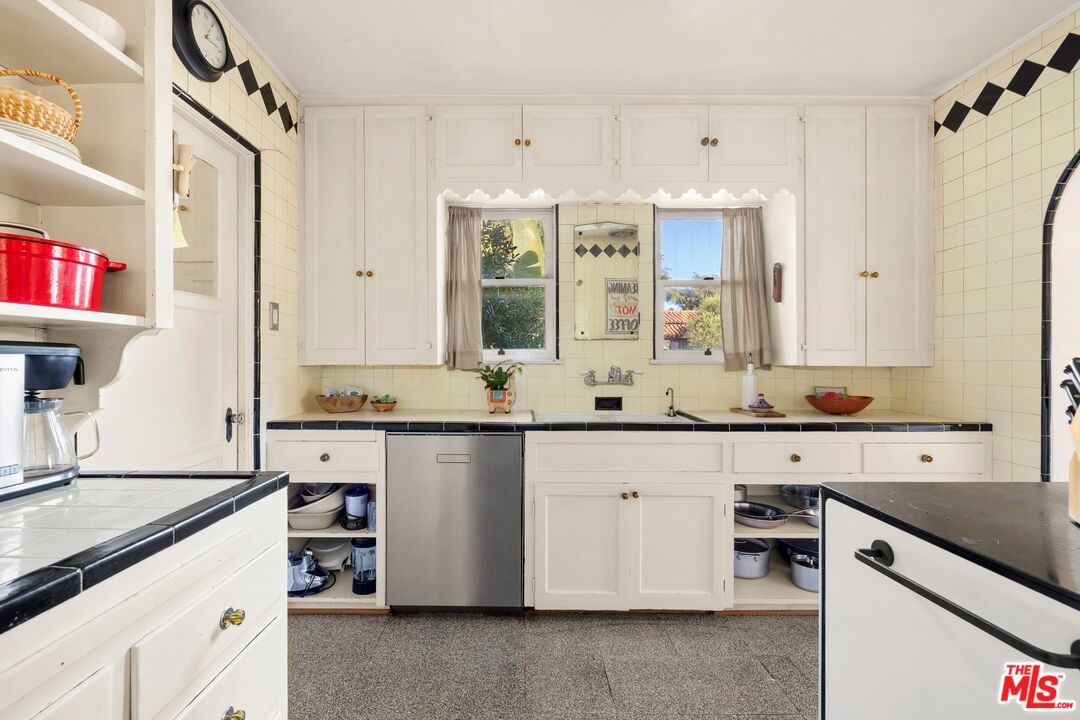 A rarely preserved 1931 Spanish Revival with exceptional original detailing! Built in 1931 as the neighborhood's model home, this beautifully preserved home exemplifies the artistry and craftsmanship of early West Los Angeles architecture. Rich in character and integrity, it retains an impressive collection of original details that are increasingly difficult to find. The exterior sets the tone with red clay tile roofing, sculptural lines, and gently curved walkways framed by mature landscaping, while inside, hand-troweled plaster walls, graceful archways and warm hardwood floors create a seamless and inviting flow throughout the floor plan. The living room is a true focal point, featuring an original sculptural fireplace, hand-painted wood ceiling beams, and a striking stained-glass window that fills the space with soft, filtered light. French doors open to a private interior courtyard, creating a seamless indoor-outdoor connection. The pergola-covered patio, complete with string lighting and a fire feature, functions as an extension of the living space and is ideal for both entertaining and everyday enjoyment. Original bathrooms have been thoughtfully preserved and remain a highlight of the home, showcasing period tilework, integrated tile vanities, scalloped cabinetry, built-in storage, vintage mirrors, and original fixtures. One bath features a pastel palette with a vintage tub and patterned tile floors, while another highlights seafoam and black tile detailing, both beautiful examples of 1930s design. The formal dining room retains its timeless elegance with arched openings, original lighting, and French windows that flood the space with natural light. Bedrooms are tranquil and well proportioned, featuring casement windows, hardwood floors, and rare hand-applied plaster friezes with delicate floral swag detailing. An arched niche desk, original doors and hardware, period sconces, decorative ceiling medallions, and painted wood accents further reinforce the home's architectural authenticity. The rear yard offers additional outdoor space and privacy, completing a property that feels both livable and historically significant. This is not a reinterpretation of a Spanish Revival; it is the real thing. Lovingly maintained and remarkably intact, this home presents a rare opportunity to own a true piece of Los Angeles architectural history. Ideally located near Century City and Beverly Hills, with easy access to shops, dining and parks. Located within the highly coveted Westwood Charter Elementary School District.