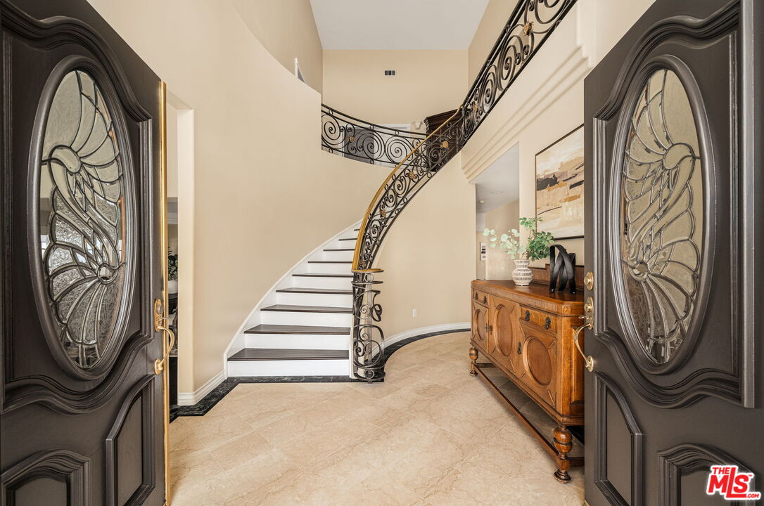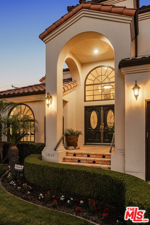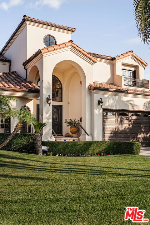 A historic opportunity to purchase one of Downey's most distinguished estates: First time ever on the market, the home has been impeccably cared for and renovated with uncompromising integrity, awaiting its next generation of owners. This 4-bed, 3.5-bath Spanish blends old-world charm with thoughtful, modern updates. The stunning romance of this home transports you to an era of elegance and glamour, with attention to modern comfort. Showcasing the distinctive elements of Spanish architecture, such as the iconic red clay tile roofing and smooth stucco exterior, this residence embodies both timeless beauty and lasting design. Designed by one of Southern California's most celebrated proponents of Spanish architecture, Sr. Anthony Navarro, this residence celebrates a refined sense of light and lines, with exquisite attention to detail and orientation. The timeless splendor with contemporary twist can be the perfect space for entertaining, for a family of all ages. Its provenance very much embodies the glamor of the space, having been graced with the likes of politicians, prominent literary giants, directors, artists, musicians, philosophers, wine importers, and rock stars. From the moment you step inside, you are greeted by original arched entryways, hand-troweled plaster walls, and a formal foyer with vaulted ceilings that perfectly complements the home's grandeur. The formal dining room flows seamlessly into the chef's kitchen with brand new appliances, a culinary haven featuring a masterclass in design, custom cabinetry, marble floors, and a generous pantry all flow into an intimate formal living room centered around a stately fireplace, filled with natural light and character. The main level also boasts an office, a stylish half bath, and a cozy bedroom with an adjoining bathroom. Ascend the grand staircase to discover the luxurious primary suite that serves as a tranquil retreat, which features a newly designed walk-in closet with a private balcony and a lavishly updated spa-like bathroom equipped with a double vanity, freestanding bathtub, and a glass-enclosed Mr. Steam shower; all brought together harmoniously with exquisite finishes. Two additional spacious bedrooms, one with a private balcony and each with expansive closets, share a charming Jack-and-Jill bathroom featuring mauve tiles that evoke timeless charm. A spacious laundry room is also available on the top floor for your convenience. The enchanting backyard is a private oasis, featuring verdant landscaping, an elegant fountain, a dedicated jacuzzi utility connection, a tree-shaded geometric garden, and pathways, as well as charming pergolas for al fresco dining. Elegant columns and decorative wrought iron details accent the property, while terraced landscaping, featuring lush palm trees and manicured hedges, enhances privacy and creates a tranquil, tropical ambiance. The home's system updates include copper plumbing, new electrical sub panels, and Vista Pro professional outdoor lighting. Additional features include a dual-zone HVAC system, closed-circuit television security, a comprehensive alarm system, a central vacuum, reverse osmosis water filtration, a water softener, and an EV-ready charging outlet. A rare opportunity to be the next steward of this lovingly cared for estate.
