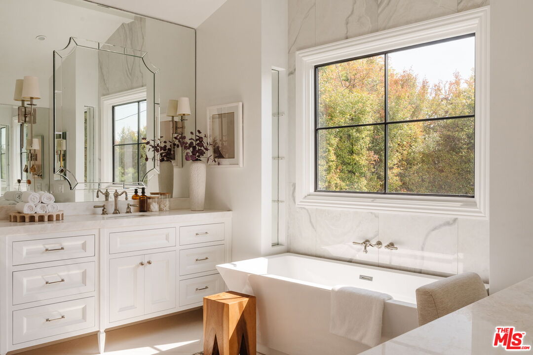 Situated in the heart of Cheviot Hills, 10560 Bradbury Road is a custom-designed Traditional residence that seamlessly blends timeless architectural charm with modern luxury, just moments from the area's premier amenities. Spanning 4,080 square feet of refined living space across two levels, this 5-bedroom, 6-bathroom home delivers an exceptional combination of comfort, style, and functionality. A classic brick facade introduces interiors rich with detail, including warm wood floors, coffered ceilings, and custom built-ins. Large windows fill the home with natural light, creating a bright and inviting atmosphere throughout. Designed with both entertaining and everyday living in mind, the main level features a gracious entry foyer that flows past formal living and dining rooms into an expansive great room. The family room, complete with built-ins, opens directly to the backyard, while the gourmet kitchen is outfitted with marble countertops, a contrasting leathered marble island with bar seating, premium Viking appliances including an 8-burner double oven range, dual dishwashers, a walk-in pantry, and a sunlit breakfast banquette. Additional main-level amenities include a dedicated office, wine cellar, powder room, and a guest suite. Upstairs, four en suite bedrooms offer privacy and comfort, including a spacious primary suite with vaulted ceilings, a private balcony overlooking the backyard, and a generous walk-in closet. The spa-like primary bathroom features dual vanities, a makeup station, a window-lined soaking tub, and an oversized marble shower. A convenient upstairs laundry room completes the level. The private backyard is surrounded by mature privacy hedging and designed for seamless indoor-outdoor living, featuring a sparkling pool with cover, built-in BBQ, turf lawn, and multiple areas for lounging or dining al fresco. Additional highlights include integrated surround sound, a security system with cameras, solar panels, and an attached two-car garage with epoxy flooring and direct home access. Located in a prime Cheviot Hills neighborhood with a peaceful residential feel, yet close to Rancho Park Golf Course, Westfield Century City, and the shops and dining along Pico Boulevard, this home offers the best of Los Angeles living in one of its most desirable communities. *OFFER DEADLINE: THURSDAY, 4/23, AT 12:00PM*