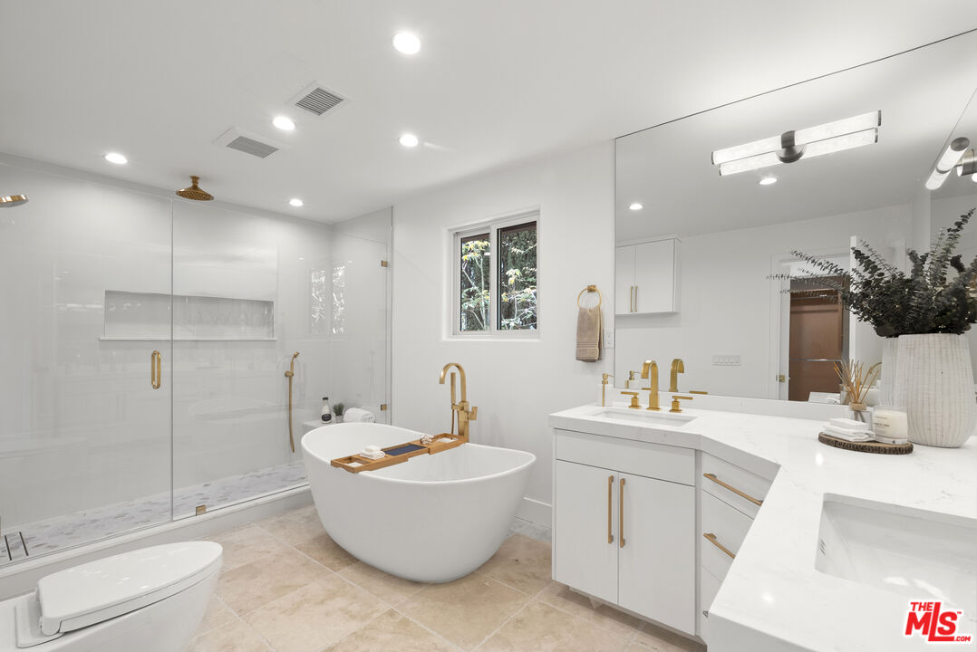 Privately gated and newly remodeled, this modern Santa Barbara Spanish home is a serene Bel Air retreat with beautiful views! 4 Bedroom / 3.5 bath residence has been thoughtfully reimagined interior with contemporary finishes and abundant natural light. Home features a primary suite on 1st floor and another on 2nd floor each with private outdoor space! Warm and inviting living spaces open seamlessly to outdoor terraces surrounded by lush landscaping, offering privacy & an ideal indoor-outdoor lifestyle. Also Available for Lease.
