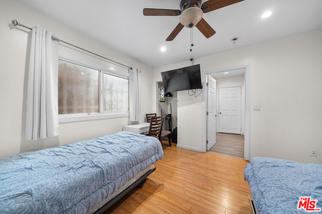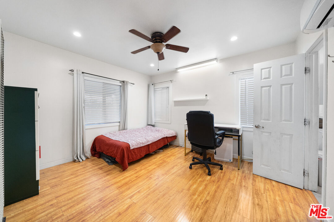 LOCATION! LOCATION! Spacious and updated 3BR/2BA, 1260SF home in a prime Los Angeles location, near USC, shopping, restaurants, and big markets with easy access to 101, 10, 5, and 110 FWY. Features include an open floor plan with hardwood floors, recessed lighting, and a cozy fireplace. The remodeled kitchen offers granite counters, stainless steel appliances, custom cabinetry, and breakfast bar. Primary suite includes walk-in closet, dual sinks, soaking tub. Additional highlights: front deck, private backyard with trees, washer/dryer, wall A/C units in all rooms, tankless water heater, dual pane windows, ceiling fans, reinforced foundation, copper plumbing, upgraded 100 AMP electrical, and CCTV security system. A separate rear entrance provides flexible use for a guest suite or rental opportunity. No parking on site. Move-in ready! Ideal for owner occupancy, rental income, or Airbnb investment!