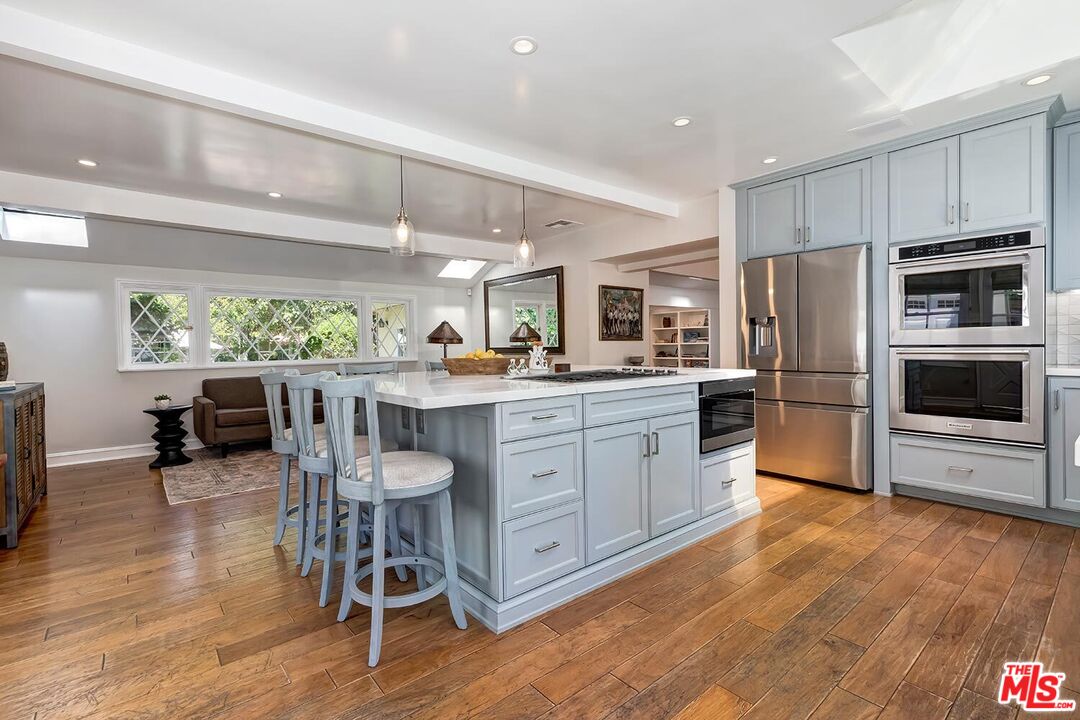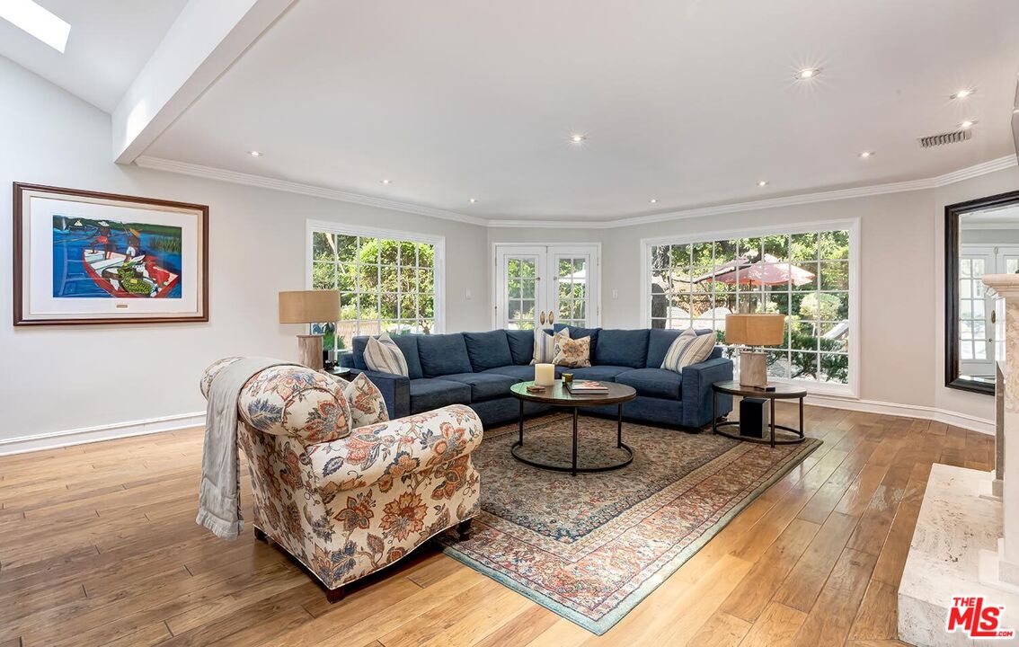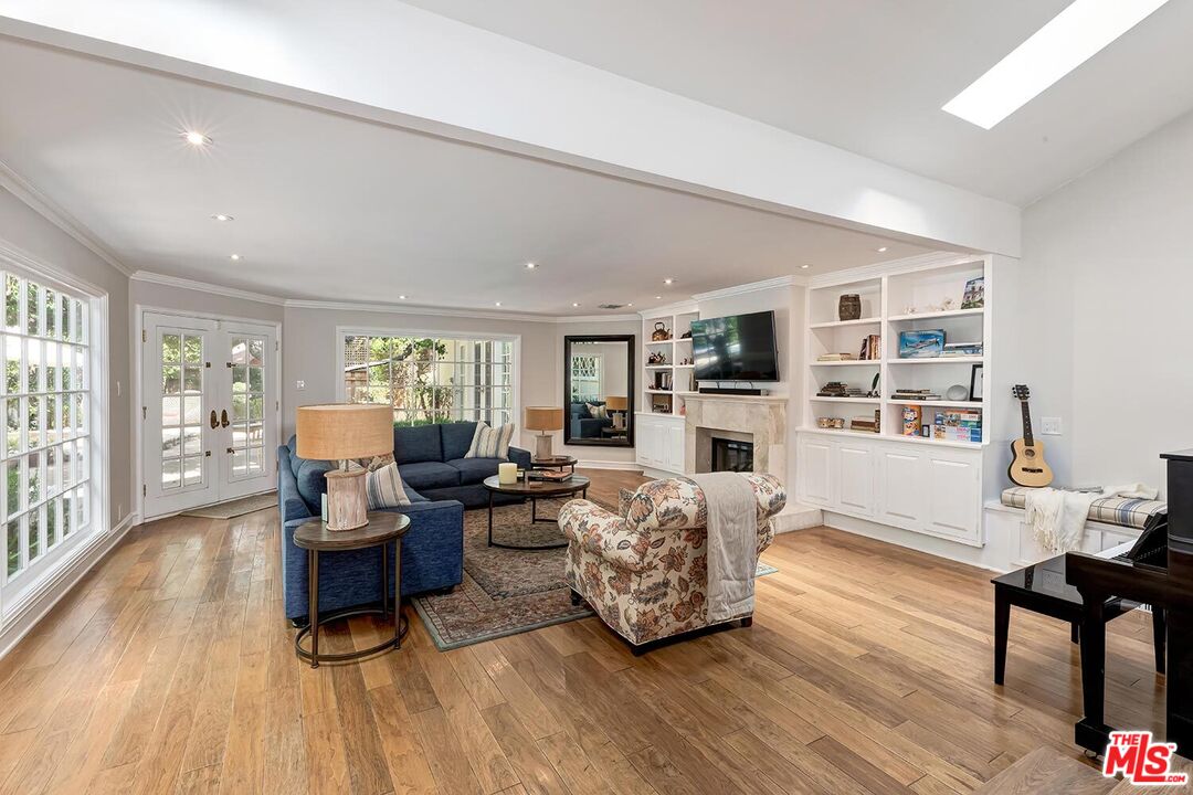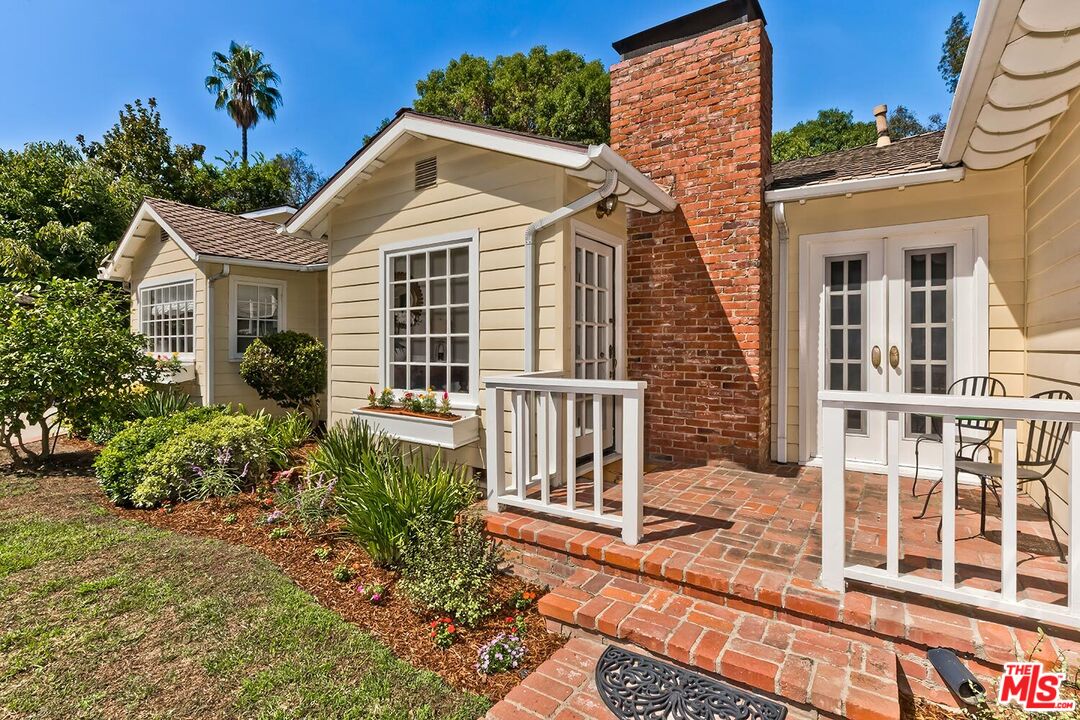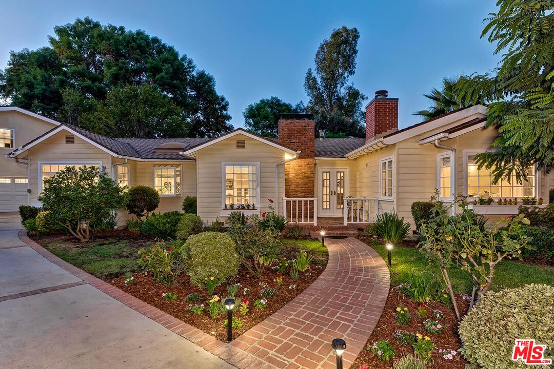 Welcome to a private retreat In Studio City's most coveted Woodbridge Park with a separate guest house, pool and spa. Tucked away at the end of a quiet cul-de-sac, on one of the largest flat lots in this most desirable neighborhood, a gated single level residence offers the perfect blend of elegance, comfort and privacy. The long, gated drive leads to this beautifully remodeled two-bedroom, two-bath main house with a flowing, light filled floor plan from skylights and oversized windows that fill the home with natural light, creating a warm and inviting atmosphere. There are four fireplaces throughout the home, adding to its allure as a fine gathering place. At the heart of this charming home is a chef's kitchen that will impress even the most discerning buyers, featuring high end appliances, custom cabinetry, an oversized center island for dining, built-in banquette seating and a cozy lounge area ideal for entertaining. The primary suite has a double-door entry leading to a spa-inspired bath, dual closets, step-down bedroom with a vaulted ceiling and French doors that open to the rear yard, spa and a sparkling salt water pool with a tranquil rock waterfall. A bright and charming guest bedroom at the other end of the hall includes custom built-ins, a vaulted ceiling, window seat and access to a stylish second bath. The lushly planted rear yard functions as a resort-style oasis perfect for entertaining and for peaceful, quiet relaxation. A detached guest house, which is permitted as an ADU, adds incredible versatility - ideal as a private suite for visitors, home office, creative studio or fitness space. This rare offering combines upscale finishing, understated luxury, thoughtful design and the best of indoor-outdoor living, situated in one of LA's best pockets to enjoy a strong sense of community, connection to neighborhood traditions, top-rated schools and a close proximity to fabulous Tujunga Village restaurants, cafes, coffee shops and boutiques.