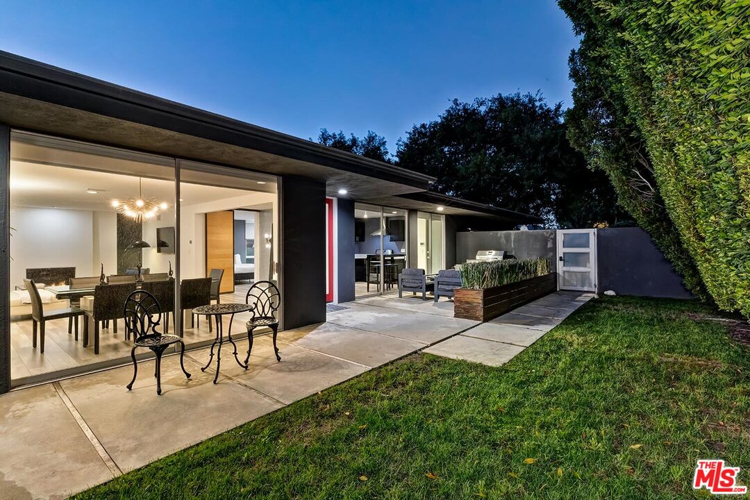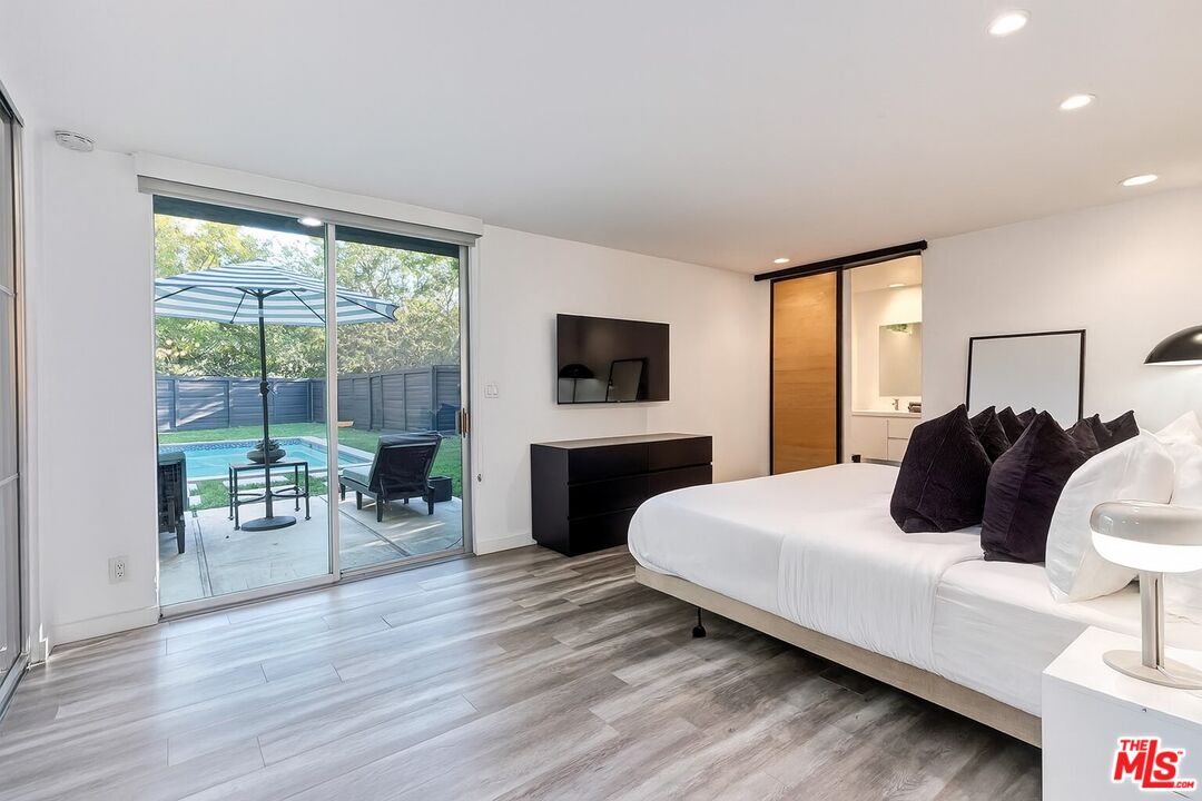 A signature example of mid-century modern design reimagined for today's resort-style living. Beyond a quiet, set aback, understated black architectural facade and tree lined private gated drive, this residence exudes sophistication and discretion from the moment of arrival. Positioned on an expansive, lushly landscaped lot, the property unfolds into an idyllic retreat centered around outdoor courtyards and walking pavers all leading to an in-ground pool with integrated spa. Framed by manicured lawns, mature Ficus hedges, and curated landscape lighting, the grounds evoke an atmosphere of serenity and seclusion. The seamless flow between indoor and outdoor living is accentuated by walls of glass doors that bathe the interiors in natural light and reveal verdant views from every angle. Inside, the home's mid-century spirit is expressed through clean lines, open volumes, and natural textures. The living, dining, and kitchen areas connect effortlessly, offering perfect fireside setting for both intimate gatherings and formal sophisticated to casual entertaining whims. Sliding glass doors open directly to the pool terrace and lawn, creating a true resort-style ambiance found hiding amidst Los Angeles and Hollywood life. The primary suite serves as a private sanctuary with serene pool and garden views, a spacious walk-in shower, and a spa-inspired bath. Additional guest suites mirror the home's elegant design, providing comfort and privacy for family and guests alike. Perfectly situated near the fine dining, coffee cafes, and boutique shops of Tujunga Village, Studio City, and Toluca Lake Village, this residence also offers unmatched convenience to the NoHo Arts District and major studios including Warner Bros., Disney, and Universal. With its modern architecture, private resort setting, and premier Toluca Lake location, 11230 Dilling Avenue embodies the essence of contemporary California living - elegant, effortless, and exquisitely private.