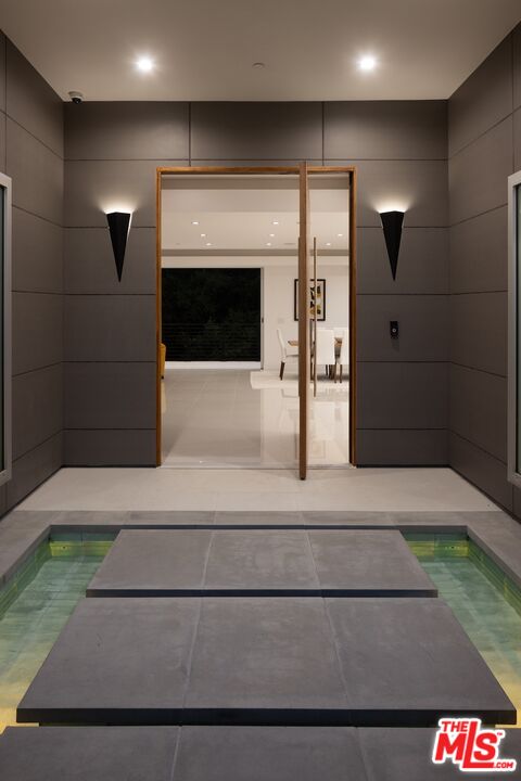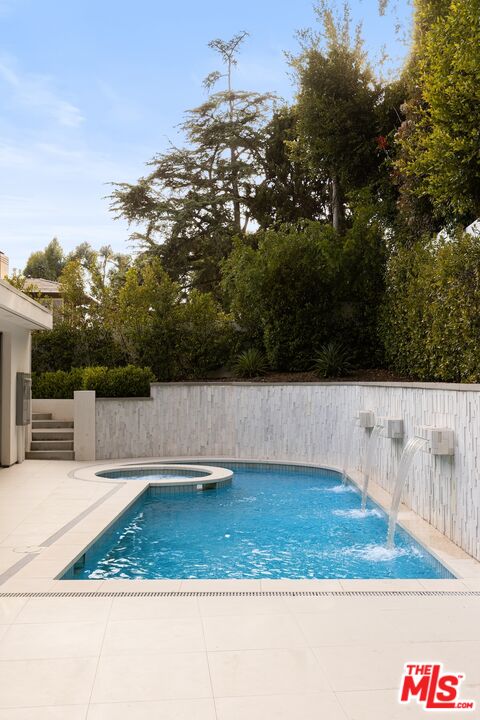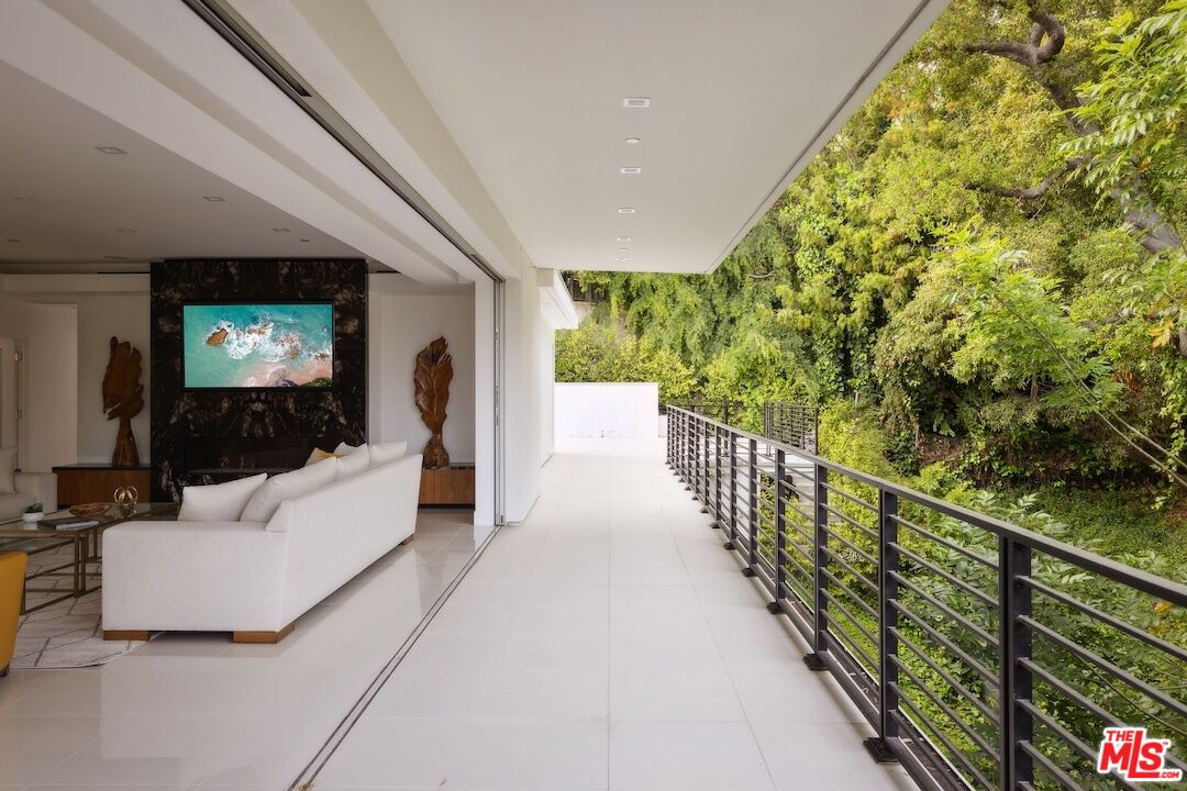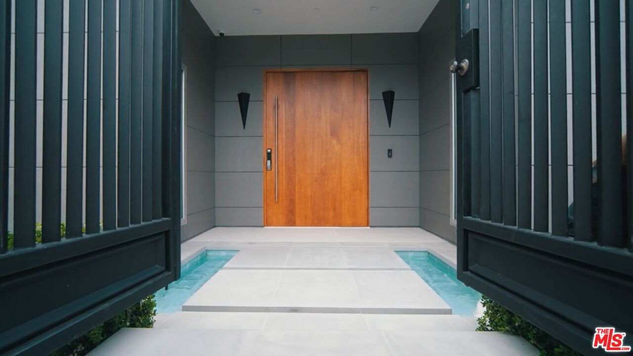 Set behind gates on a premier and prestigious Beverly Hills street (Beverly Hills proper - not BHPO), all on one single level, this newly rebuilt smart home seamlessly blends cutting-edge technology with refined modern luxury. Greeted by approximately 175 feet of frontage and impressive curb appeal, the residence invites you across floating steps above a serene reflecting pool, where a custom-designed pivot door unveils bold, sophisticated modern architecture. Inside, expansive floor to ceiling Fleetwood pocket doors disappear to reveal curated greenery and treetop vistas while creating a fluid indoor-outdoor living experience. Gleaming porcelain floors and tray ceilings add volume and sophistication to the open-concept layout. The living room centers around a dramatic, floor-to-ceiling bookmatched slab fireplace. Multiple Primary bedrooms with ensuite bathroom designs, large walk-in closets and floor to ceiling Fleetwood pocket doors leading to a magnificent resort style pool & spa experience. The showpiece kitchen is a chef's dream; complete with two separate islands, one prep island, and one buffet/breakfast bar with recessed countertop beverage chiller, sleek custom European designed cabinetry, Miele appliances including steam and speed ovens, two separate gas and induction cooktops, a built-in Meile espresso machine, two separate Bosch dishwashers and professional-grade Sub Zero Column refrigerator & freezer units. Entertaining is effortless with a nearby bar featuring a dual-zone beverage cooler and a striking floor-to-ceiling glass climate controlled wine cellar that's as artful as it is functional. Smart home integration offers seamless control over lighting, sound, security, and climate, enhancing both convenience and ambiance. Outside, enjoy multiple viewing decks, serene lounging spaces, a sparkling pool and spa, lush flat grassy yard and a generous motor court round out the grounds of this entertainer's haven. Just moments from Sunset Boulevard, Rodeo Drive, world-class dining, and premier Beverly Hills amenities with access to top-rated public schools, world renowned police and fire departments; this estate offers a lifestyle of effortless elegance, innovation, and distinction.