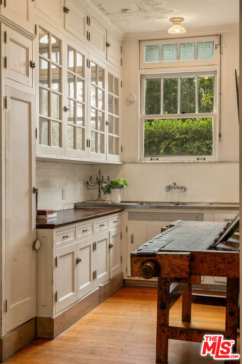 Historic Los Angeles Landmark, The Rives Mansion. A true architectural gem in Country Club Park, the Rives Mansion is a grand Beaux-Arts Mediterranean estate designed by Alfred Rosenheim and recognized as Los Angeles Historic-Cultural Monument #661. Built in 1913, the home is steeped in history and character, with nearly all of its original details beautifully preserved. Owned for over 60 years by the Sisters of Social Service, a progressive Benedictine order with Hungarian roots, the estate served as a peaceful center for community, reflection, and gatherings. Though centrally located, some say Mid-City, others K-Town or Arlington Heights, its position on a corner lot across from the park-like grounds of the Sisters of St. Joseph of Carondelet retreat center gives it a rare sense of quiet and privacy. It truly feels like an oasis in the heart of the city. Inside the approximately 7,000-square-foot main home, you'll find exquisite period features: a Louis XV-style formal living room, mahogany-paneled library, circular breakfast room with a 1913 Zuber wallpaper mural, solarium with green Grueby tile, four marble fireplaces, intricate crown molding and filigree ceilings, hardwood floors, stained glass, and more. The half-acre property also includes a detached 2-bedroom, 2-bathroom carriage house (approx. 1,770 SF) and a separate studio with office and bath. Upstairs in the main residence are six bedrooms and four bathrooms, while a 1,200-square-foot unfinished basement offers potential for expansion. The Rives Mansion has also made its mark in pop culture, featured in Buffy the Vampire Slayer, Booksmart (2022), and as the backdrop for events hosting guests from Solange to Archbishop Mahoney.A rare opportunity to own one of Los Angeles' few surviving Gilded Age estates, rich in artistry, history, and soul. Disclaimer: there are 3 digitally rendered photos to provide a new look for landscaping around the front and a potential pool; the current condition is shown and there is no pool.