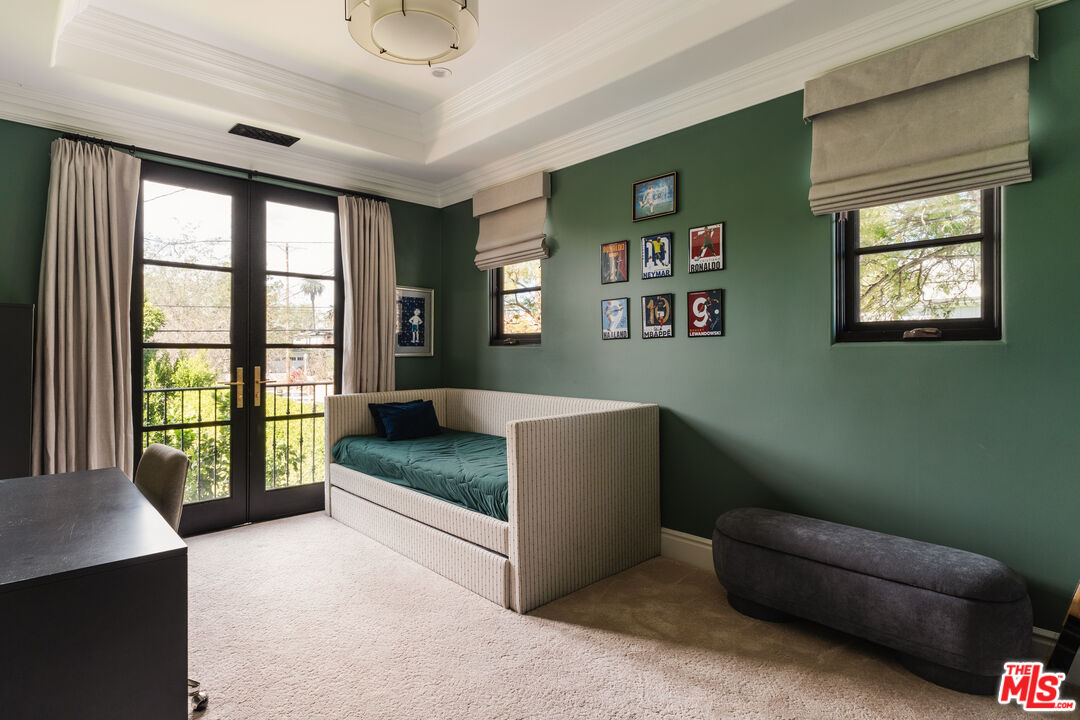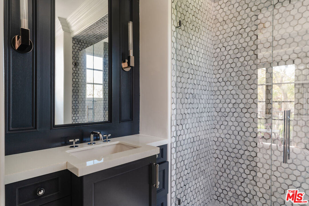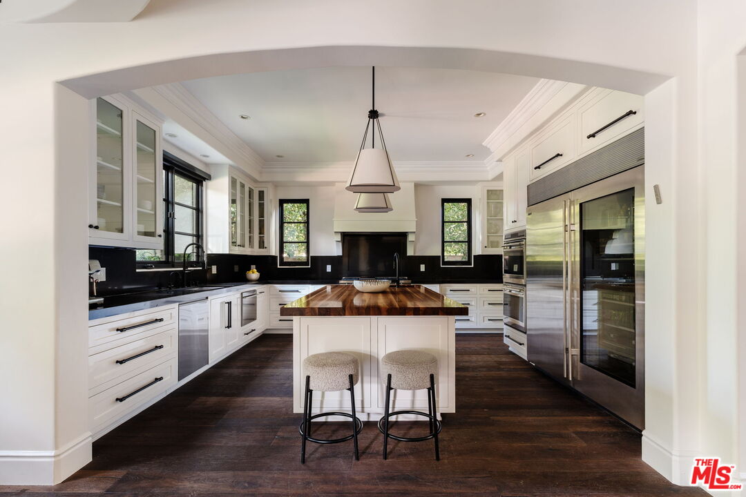 Privately set in the coveted Colfax Meadows neighborhood of Studio City, this Montecito Spanish residence blends timeless architecture with refined modern comforts. Nestled behind lush landscaping, the home offers a serene retreat with an effortless indoor outdoor lifestyle. A dramatic entry welcomes you with soaring vaulted ceilings and a sweeping spiral staircase, setting the tone for the elegant interiors that follow. Just off the foyer, a moody, front facing library features custom built-ins and a striking marble fireplace, creating an ideal space for quiet moments or intimate gatherings. Designed for both formal entertaining and everyday living, the home features a beautiful dining room framed by rounded archways and intricate ceiling detail. The expansive chef's kitchen is thoughtfully appointed with a large center island, butler's pantry, walk-in pantry, and a sunlit breakfast area. It flows seamlessly into the inviting family room, complete with custom built-ins, a fireplace, and sliding doors that open to the backyard. The home offers five bedrooms and six bathrooms, including one bedroom suite on the main level and four upstairs, along with a dedicated office. Each bedroom is ensuite, providing comfort and privacy throughout. The primary suite is a true sanctuary, featuring a private balcony, built-ins with a refrigerator, and a marble fireplace. The oversized primary bathroom is designed for relaxation, complete with a soaking tub, steam shower, dual sinks, a vanity, and an expansive walk-in closet with a center island. Outdoors, the resort style backyard is lush and tranquil, featuring a large saltwater pool with a Baja shelf, spa, fire pit lounge area, and a fully equipped outdoor kitchen with BBQ, perfect for entertaining or unwinding in complete privacy. Just minutes from Tujunga Village, Ventura Place with its renowned Sunday Farmers Market, and the Shops at Sportsmen's Lodge, offering a vibrant mix of dining, shopping, and community. Located within the highly sought after Carpenter Community Charter School district and close to some of the area's most prestigious private schools.