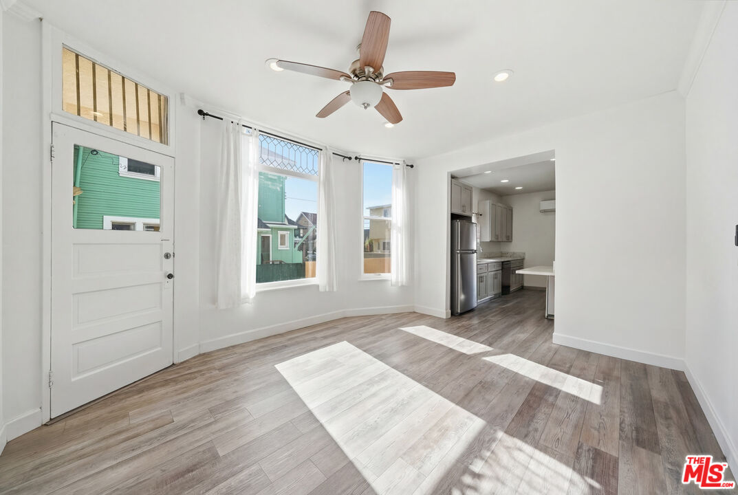 Welcome to this charming Spanish Colonial Revival single-family home near Downtown Los Angeles, offering approximately 2,110 sq ft of beautifully updated living space. This 4-bedroom, 2.5-bath residence also features a versatile den, providing flexible living options for modern Los Angeles living. Thoughtfully remodeled by the current owners, the home showcases newer kitchen appliances, updated cabinetry, modern countertops, and stylish laminate flooring throughout. The home also features multiple energy-efficient mini-split air conditioning units for individualized climate control in each bedroom and living space. The inviting floor plan blends classic architectural character with contemporary upgrades, creating a warm and functional living environment. Upstairs, with its own private entrance, you'll find an additional den area of approximately 870 sq ft, ideal for entertaining or accommodating visitors. Outdoor spaces include a charming front garden and a private backyard area perfect for relaxing or hosting gatherings. The gated property offers added privacy and security, with a driveway that accommodates three or more vehicles. A detached shed provides extra storage, and the washer and dryer are conveniently located in a separate laundry room just outside the rear of the home. Near Downtown, USC, Koreatown, and much more. A rare opportunity to own a character-filled, move-in-ready home in a prime urban location.