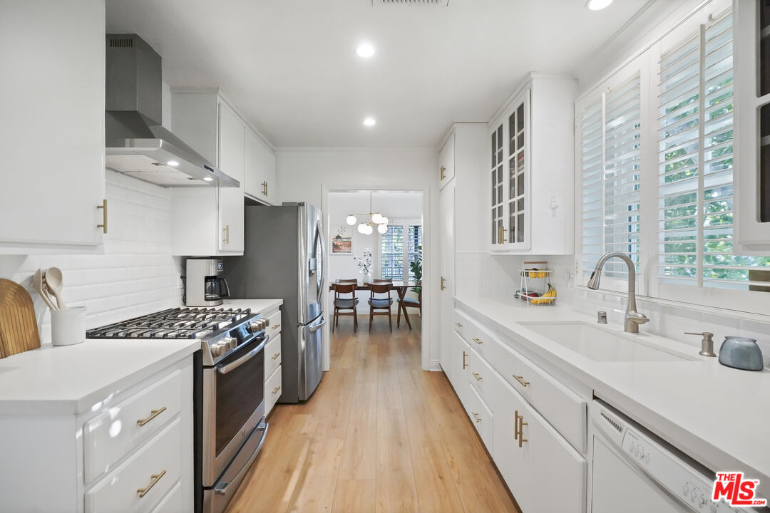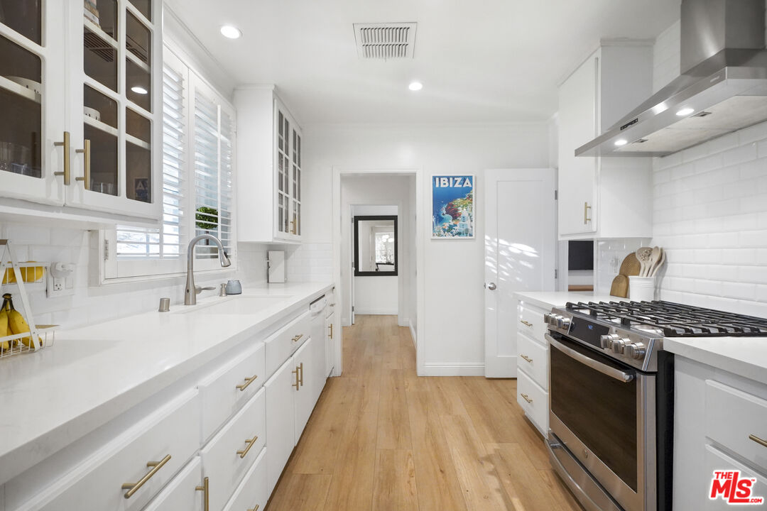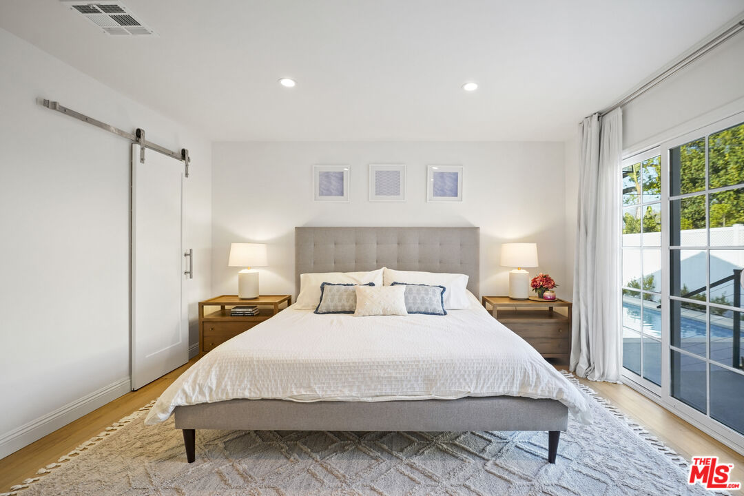 A sublime redesign, renovation and expansion brings contemporary luxury to the most sought after neighborhood in Valley Village in this masterful, modern makeover. No detail overlooked; no expense spared embodying exceptional style reflecting high design and a polished sophistication. The finely manicured exterior presentation of this 1940s California Traditional is picture perfect with a lush fusion of floral and greenery offering exceptional curb appeal that bids a warm, inviting welcome. Inside the light filled floorplan provides gracious transition from room to room ideally suited for today's contemporary living. Interiors are with fine quality material elements thoughtfully selected. Wood floors grace the living areas. Recessed lighting glows throughout. Remodeled baths feature on trend designs in lighting, fixtures and finishes. The kitchen is a finely curated culinary center where style, form and function converge for the adventurous at home chef. Artfully adorned with quartz countertops and stainless steel appliances. Glass doors of the family room bring the outdoors in providing seamless access to the private, backyard oasis where pool and patio are perfect for the Southern California lifestyle of al fresco leisure and endless outdoor entertaining. Three bedrooms with three bathrooms including a lux primary suite with walk in closet and direct patio and pool access round out the comfortable accommodations for family and guests. Crowning a sweeping, gated corner lot in the award winning Colfax Charter School District and just moments from NBC, CBS, Warner Bros., Paramount and Universal Studios, City Walk, beloved Valley Village Park and the famed NoHo Arts district. Here is an idyllic, vibrant tree lined community and wonderful place to call home. Welcome!