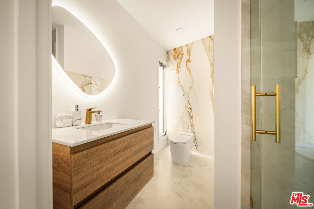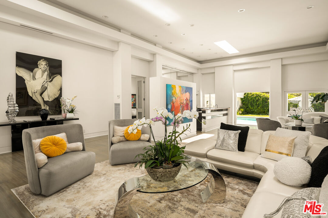 BEVERLY HILLS PROPER. Completely reimagined in 2026 and privately tucked behind tall hedges and gates on one of the most desirable streets in Beverly Hills, this Art Deco estate offers exceptional scale and privacy. Originally designed and built by renowned Hollywood couture designer Dina Barel, the home reflects timeless design and thoughtful attention to detail throughout. Set on over half an acre of landscaped grounds, the property blends classic architecture with a layout that feels functional and inviting. High ceilings, skylights, and French doors fill the home with natural light, while quality finishes add warmth and polish. The main level is ideal for entertaining, featuring a well-appointed kitchen with high-end appliances, custom cabinetry, and a large island that opens to the dining area and wet bar, all with direct access to the backyard. Outside, a pool and spa, natural waterfall, mature palms, and multiple seating areas create a private setting perfect for both relaxing and hosting. Upstairs, the primary suite includes a fireplace, dual dressing areas, and spacious bathrooms with a soaking tub and steam shower. Additional bedrooms are bright and generously sized, complemented by a lounge area and separate staircase for added flexibility. A rare opportunity in a premier Beverly Hills location, this home offers privacy, quality, and timeless appeal, ready for its next owner to enjoy.