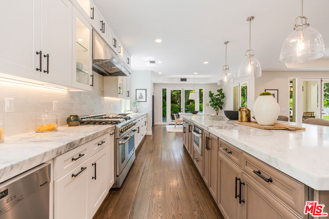 Description: Beautifully and extensively remodeled and renovated throughout, this stunning residence shows like new. Grand two-story foyer, flooded with natural light, opens onto the formal living room with fireplace and sitting room, with French doors which open to a charming private garden with fountain. The spacious open concept kitchen and family room feature a huge center island with dining bar, dual dishwashers, farmhouse sink, marble slab countertops, 300 bottle wine refrigerator and beverage center, ample storage and pantry plus an intimate junior dining area. The formal dining room is lovely with views out to the lush and private back yard. A bedroom suite, power room and gym/bonus room complete the downstairs. The primary bedroom suite is a retreat unto itself with a fireplace, cozy sitting area, large balcony, huge walk-in closet and an incredible spa-like primary bath with heated marble floors, dual vanities and make up area, large soaking tub and deluxe shower with separate steam room. There are also three additional secondary bedroom suites upstairs plus a roomy and comfortable lounge area, perfect for a study or upstairs family room. The backyard is like a 5-starhotel, with sparkling lagoon pool with spa and waterfall, large grassy area, built-in outdoor barbeque kitchen and heated dining veranda off the kitchen and family room. Smart home features enable one to control home systems and pool from one's phone. Attached two-car garage with 240/50 Amp outlet for electric vehicles offers direct access to the residence. The grounds are gated and private with a large grassy front yard and off-street parking for multiple vehicles. Located in a prestigious N. of Sunset location, close to fine dining, shops and the best of Brentwood, this property is not to be missed. Site & Floor Plan can be viewed in DOCS. Show all description