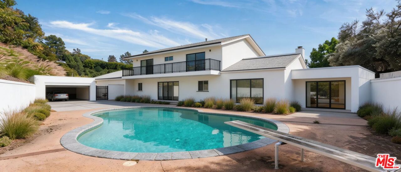 AN EXCEPTIONAL OPPORTUNITY TO BUILD OR REIMAGINE IN BEL AIR: Tucked away at the end of a long private drive, this rare offering presents one of the most compelling entry points into Bel Air. Set on an expansive approximately 33,000 square foot lot, the property delivers privacy, tranquility, and sweeping views an ideal canvas for a visionary builder, investor, or end user ready to create something extraordinary. The existing residence is filled with natural light and offers strong bones for a thoughtful renovation. Tall ceilings and generous formal spaces provide an excellent foundation, while a welcoming entry opens to a large living room designed for both comfort and entertaining. The pool is perfectly positioned to capture the surrounding vistas, and an additional flat pad offers the opportunity to expand usable outdoor space or further enhance the estate grounds.The home includes four well proportioned bedrooms and four bathrooms, along with a direct access garage, completing the current layout. Whether you choose to renovate, reimagine, (see renders) or build new, this is a rare chance to secure a prime Bel Air setting and transform it into a show stopping estate tailored to your vision.