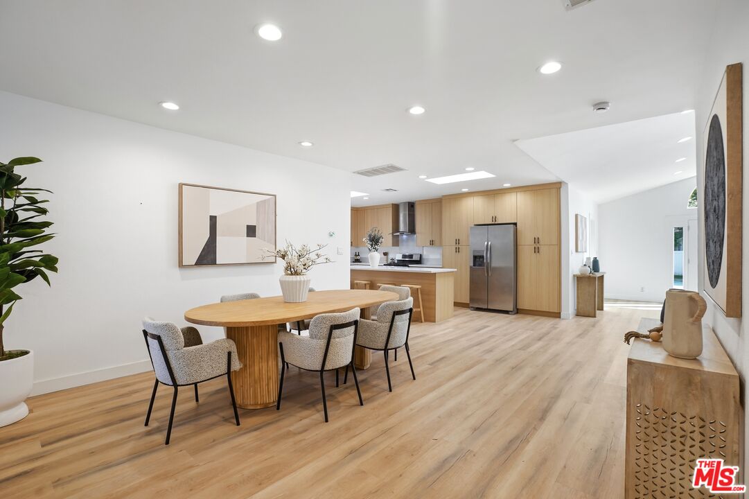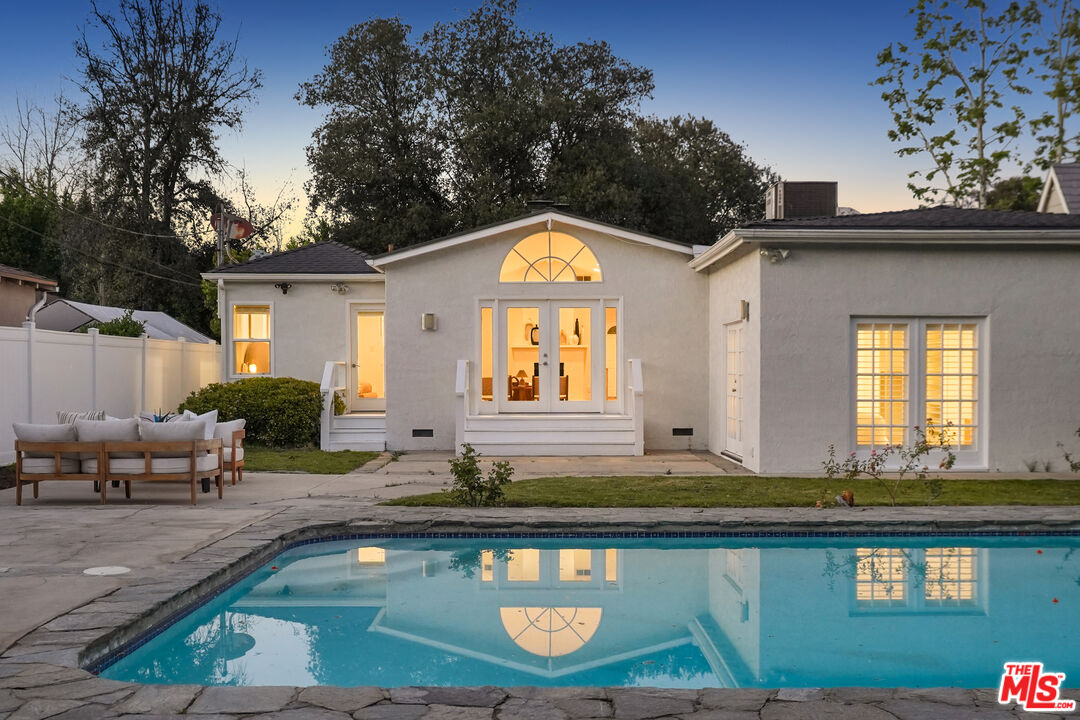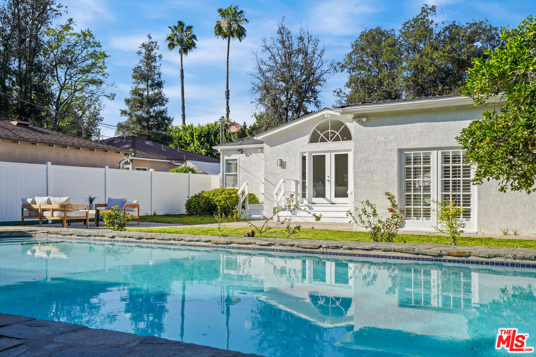A compelling lifestyle renewed with this redesigned and expanded 1930's classic California Ranch sited in the most sought after neighborhood in Valley Village: An idyllic, vibrant tree lined community and wonderful place to call home! Beautifully crowning an expansive 8,103 square foot lot, the property resides in divine harmony with its verdant surroundings of sprawling lawns and towering trees with an alluring exterior presentation of floral and greenery. Inside, the open, light filled floorplan flows with an easy, relaxed elegance with updates that reflect the design and amenities ideally suited for today's contemporary living. Recessed lighting glows throughout. The newly remodeled kitchen is ideally designed for the at home chef. Artfully adorned with grand center island, soft close drawers, quartz countertops and fine stainless steel appliances. Modernized baths feature on trend lighting, fixtures and finishes. Glass atrium doors bring the outdoors in and give way to an idyllic, private, resort-like environment and venue that embodies the coveted Southern California lifestyle of warm, relaxed poolside lounging by day, cool gatherings and entertaining by night. Highlights include a lux primary suite with dual walk-in closets, spa-inspired bath with soaring ceilings and direct pool access. Three additional bedrooms with bath round out the comfortable accommodations. Attached 2-car garage with ready to issue plans for a 1 bed/1bath ADU if desired. Ideally located on a serene, picturesque street, one of the best in the area, in the award winning Colfax Charter School District and just moments from NBC, CBS, Warner Bros, and Universal Studios, City Walk, beloved Valley Village Park and the famed NoHo Arts District. This exceptional residence of timeless appeal offers lasting enjoyment and enduring value for the fortunate new owners and is the place where you want to live. Welcome!
