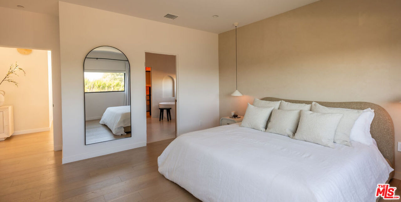 Description: Welcome to a modern sanctuary created and built as a personal residence by a husband and wife team, she an interior designer and he a fashion producer. Every aspect of this immaculate ground-up home was professionally designed with purpose, merging craftsmanship, light, and calm in perfect balance. The kitchen's bountiful custom white-oak cabinetry anchors the room with clean geometry, complemented by handmade Zellige tile that add texture and warmth. Natural light moves gracefully through 16-foot vaulted ceilings, revealing a palette of soft Roman clay and warm wood. The main living space opens effortlessly to the lush backyard with mature landscaping, where indoor and outdoor living blend seamlessly. The open concept flow feels intuitive, with spaces that invite gathering and quiet in equal measure. Throughout the home, thoughtful details like Visual Comfort lighting and subtle stone accents create an atmosphere that feels elevated yet understated. The powder room's Calacatta Viola marble sink and custom wood stair treads and risers bring a sense of craftsmanship to the home's vertical movement. A detached guest suite with its own kitchen and bath offers flexibility for guests, a live-in nanny, an in-law suite, creative use, or additional income, maintaining privacy without disrupting the architectural harmony of the main residence. The private backyard and spacious roof deck lend themselves to endless outdoor dining and entertaining opportunities. Every detail has been thoughtfully curated, resulting in an unparalleled functional and refined design. Seldom does a home that embodies this emotion and eminence become available. Whether hosting a dinner party or simply lounging with family and friends, this bespoke home is the perfect place to call home. Set on one of the most convenient and neighborly streets in West Los Angeles, this home offers easy access to the beach and all West LA has to offer, yet sits quietly on a wide, no-through street where kids still learn to ride bikes. A residence of light, material, and intention designed to not only impress, but be lived in. Show all description