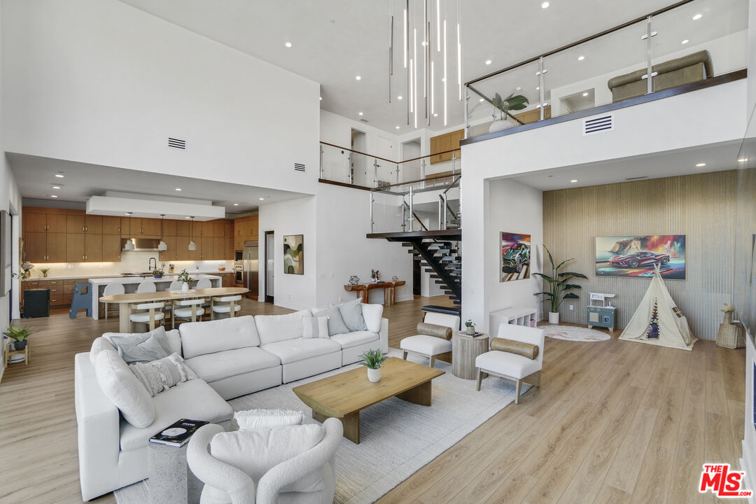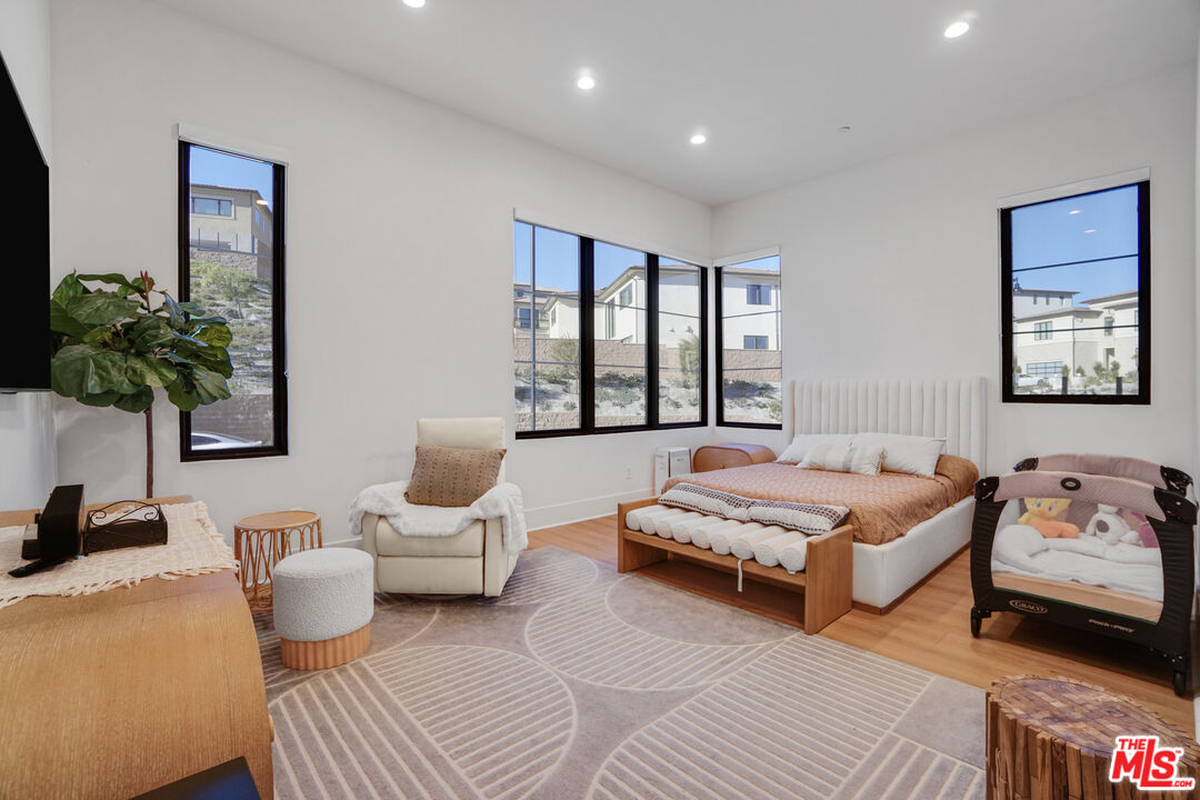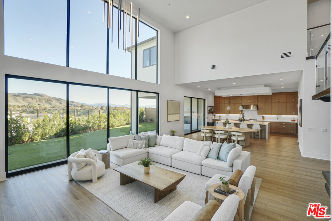 Discover architectural excellence in this highly coveted Toll Brothers Asti floor plan, ideally positioned on a coveted corner lot in Westcliffe. Tinted front windows and garage door bring a sophisticated, modern touch to the exterior while enhancing privacy and curb appeal. With 5 bedrooms, 5.5 bathrooms, and an expansive open-concept layout, this residence exemplifies sophisticated design and effortless indoor outdoor living. Upon entering through the grand solid wood and glass door, you are greeted by soaring 24-foot ceilings, walls feature a cloudy, mottled texture created with lime wash paint and a bright, airy floor plan that immediately feels like a private sanctuary. Floating stairs make a dramatic architectural statement, while expansive windows and oversized stackable doors flood the Great Room and chef's kitchen with natural light. The gourmet kitchen is a true showpiece featuring floor-to-ceiling custom cabinetry, upgraded backsplash and countertops, and a stunning Montreal Quartz waterfall-edge island as the centerpiece. Premium Wolf appliances, a Sub-Zero refrigerator and Restoration Hardware hardware create an entertainer's dream setup. A spacious walk-in pantry offers abundant shelving and storage for all your culinary essentials. The first level also includes a versatile office/media room, a flex space ideal for a gym, and a private guest bedroom with a full bath.Upstairs, the luxurious Primary Suite serves as a private retreat, complete with its own lounge area, warm wood panel accenting, and panoramic city and mountain views. The spa-inspired bathroom features dual vanities, a rain shower head, a Calacatta Umber marble shower, and a freestanding soaking tub. Each additional bedroom includes its own en-suite bathroom with upgraded tile, mirrors, and countertops, ensuring comfort and privacy for family and guests. A spacious loft on this level captures dramatic views through towering windows. Outdoor living is elevated with smart-home enhancements, outdoor fireplace and plenty of space for your own oasis. Other features: SOLAR PANELS are owned, home is pre-wired for in-wall speakers The expansive tandem 3-car garage provides ample space for vehicles and storage. Conveniently located near The Vineyards shopping center, Whole Foods, AMC, award-winning schools, and easy access to the 118 freeway, this is a rare opportunity to own one of Porter Ranch's most prestigious and breathtaking estates. Conveniently located near The Vineyards shopping center, Whole Foods, AMC, award-winning schools, and the 118 freeway, this is a rare opportunity to own one of Porter Ranch's most prestigious and breathtaking estates. Make sure to View the Virtual Tour of this stunning home!!