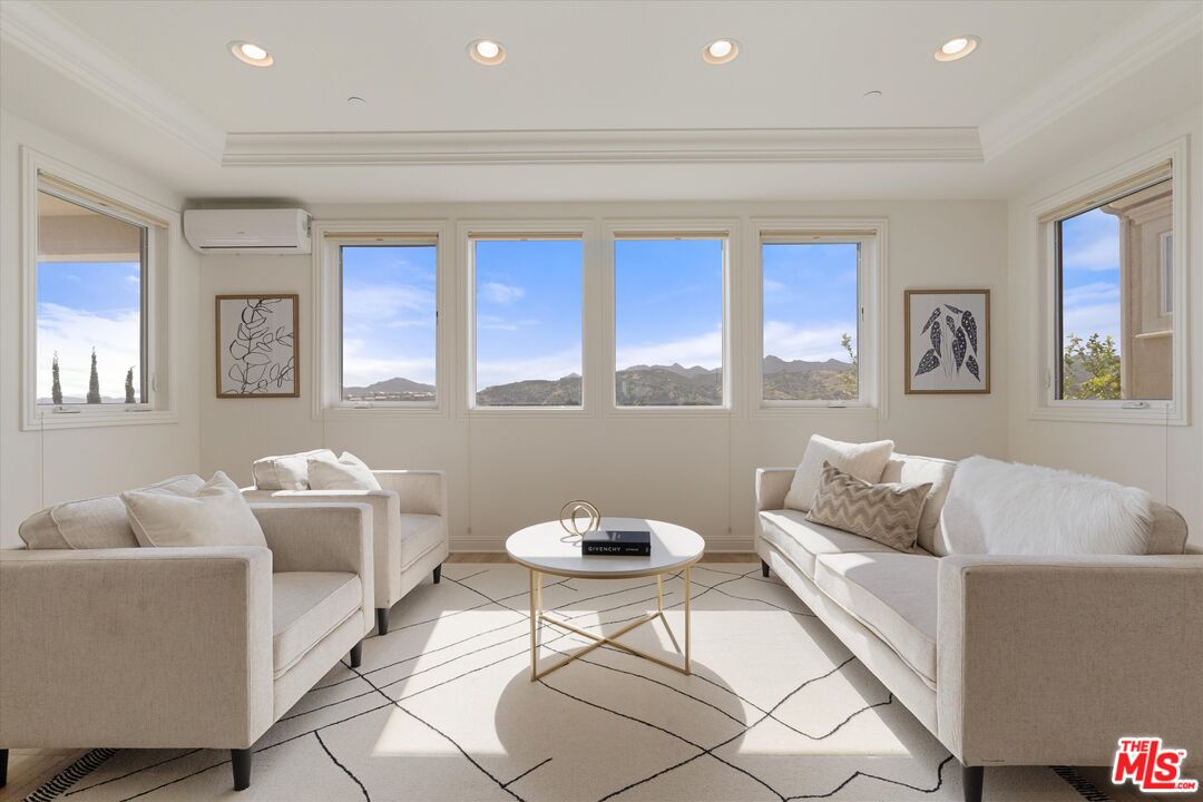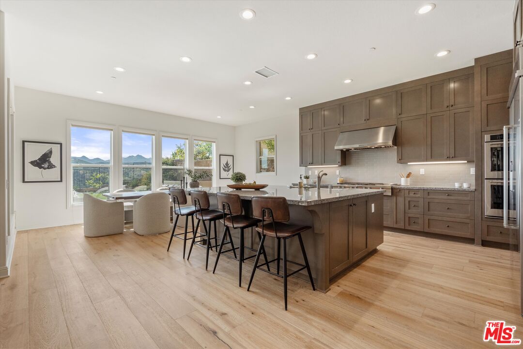 Nestled within the prestigious guard-gated Bella Vista community of Porter Ranch, 11919 Ancona Way is a masterpiece of design and vista. This stunning residence offers 3,935 square feet of refined living space, featuring 5 bedrooms and 5.5 bathrooms. Positioned on a quiet cul-de-sac with no neighbors directly across the street, the home commands sweeping hillside and bluff views that are truly vibrant by day and glittering by night. Inside, soaring ceilings and an expansive open floor plan create an atmosphere of airy sophistication. The gourmet kitchen serves as the heart of the home, boasting an oversized stone center island and a seamless flow into the living and dining areas perfect for both intimate evenings and grand-scale entertaining. Nearby, a stone fireplace anchors the sunroom, adding warmth and character while perfectly framing the surrounding landscape. The primary suite is a sanctuary unto itself, complete with two walk-in closets, a spa-like en-suite bath, a sitting area, and a spacious balcony overlooking the hills. Each additional bedroom is generously sized with its own en-suite bathrooms, offering versatility for family, guests, or a dedicated home office. Outside, the views take center stage, creating a backdrop that makes every moment feel significant. Beyond the gates, the best of Porter Ranch awaits: top-rated schools, premium shopping and dining at The Vineyards, scenic hiking trails, and a 50-acre community park. This is more than a home; it is an elevated lifestyle and a rare opportunity. Don't miss out and come see us!!!