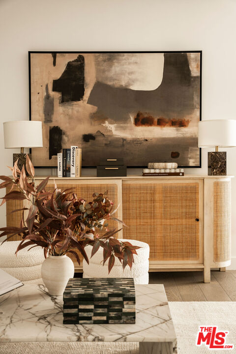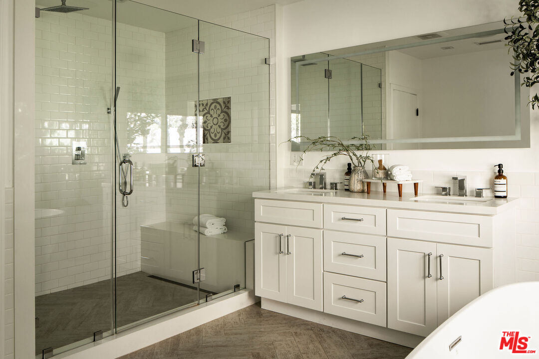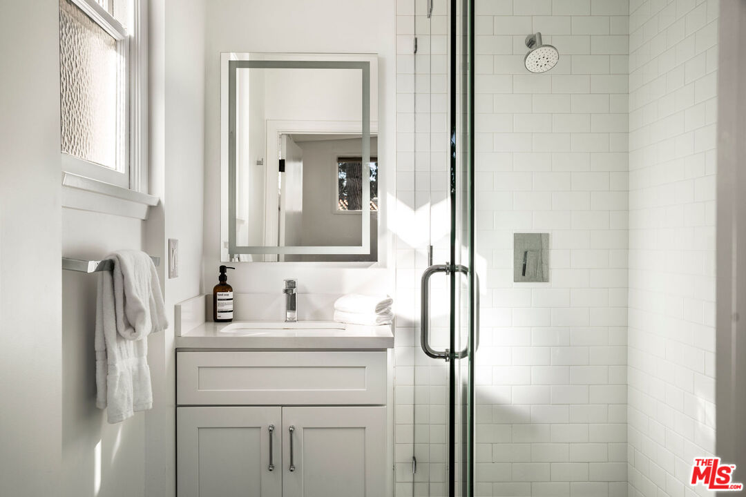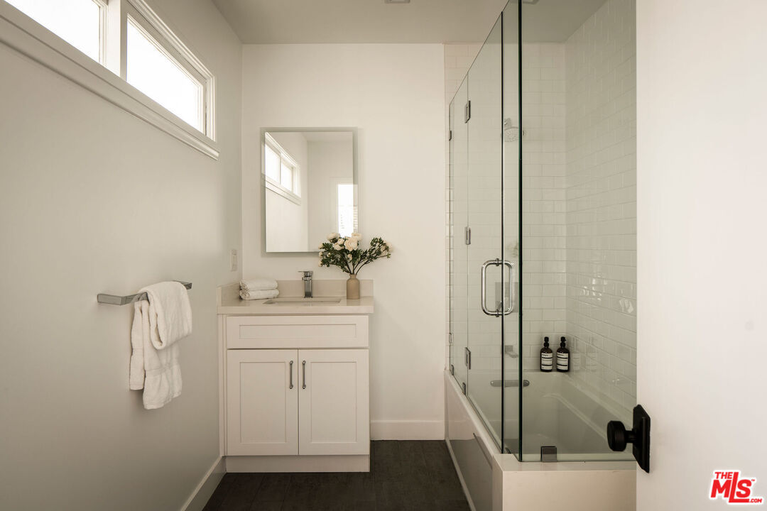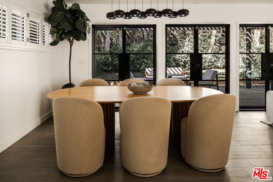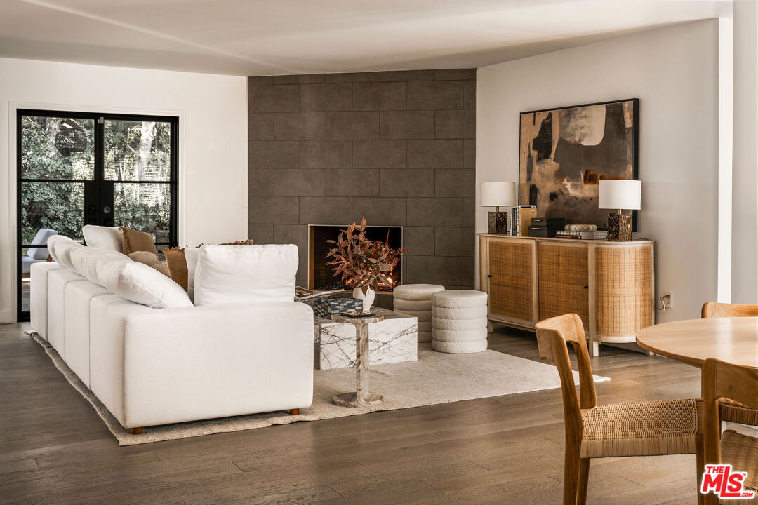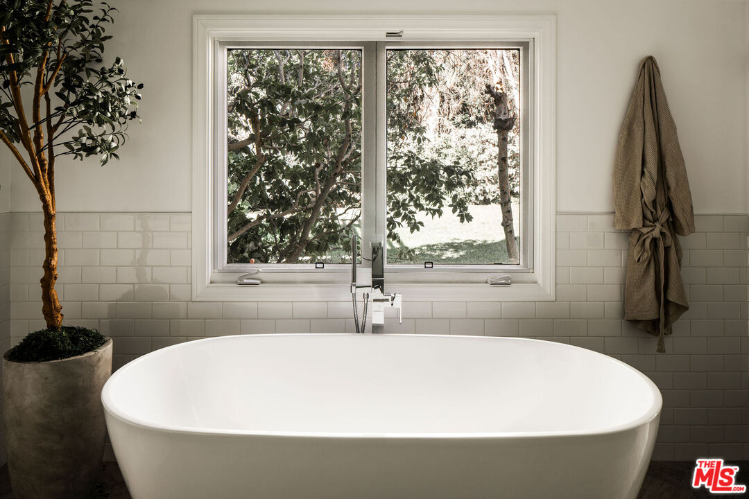 Beautifully updated modern farmhouse nestled in the heart of Brentwood, perfectly positioned between Sunset Boulevard and San Vicente. Just moments from premier shopping and dining, yet tucked away on a peaceful, private street. Surrounded by mature trees and lush flower gardens, this home offers a serene retreat in the city. Inside, the open floor plan features a spacious living room with rich hardwood floors, a cozy fireplace, and expansive custom steel French doors that flood the space with natural light. The primary suite opens to a charming back garden with a deck and inviting seating area. All three bedrooms are generously sized, each with its own ensuite bath. A detached two-car garage completes this exceptional property.