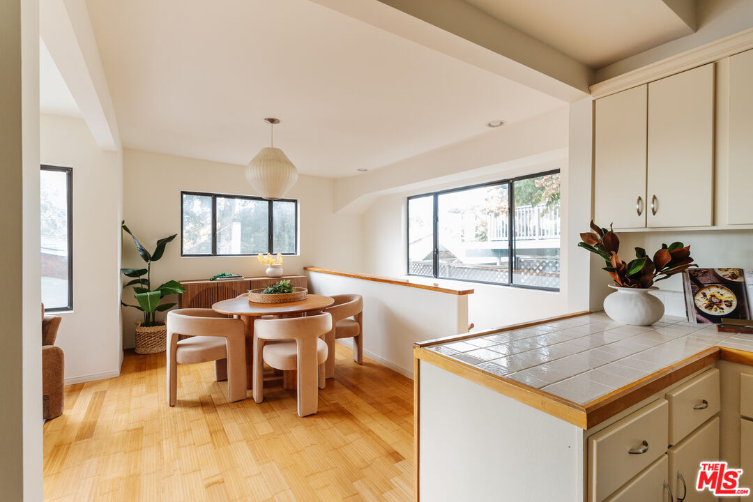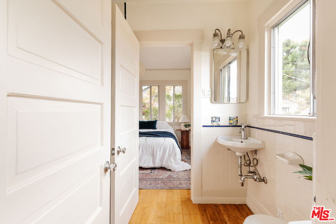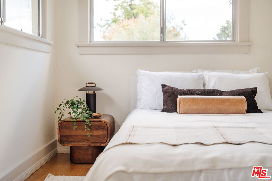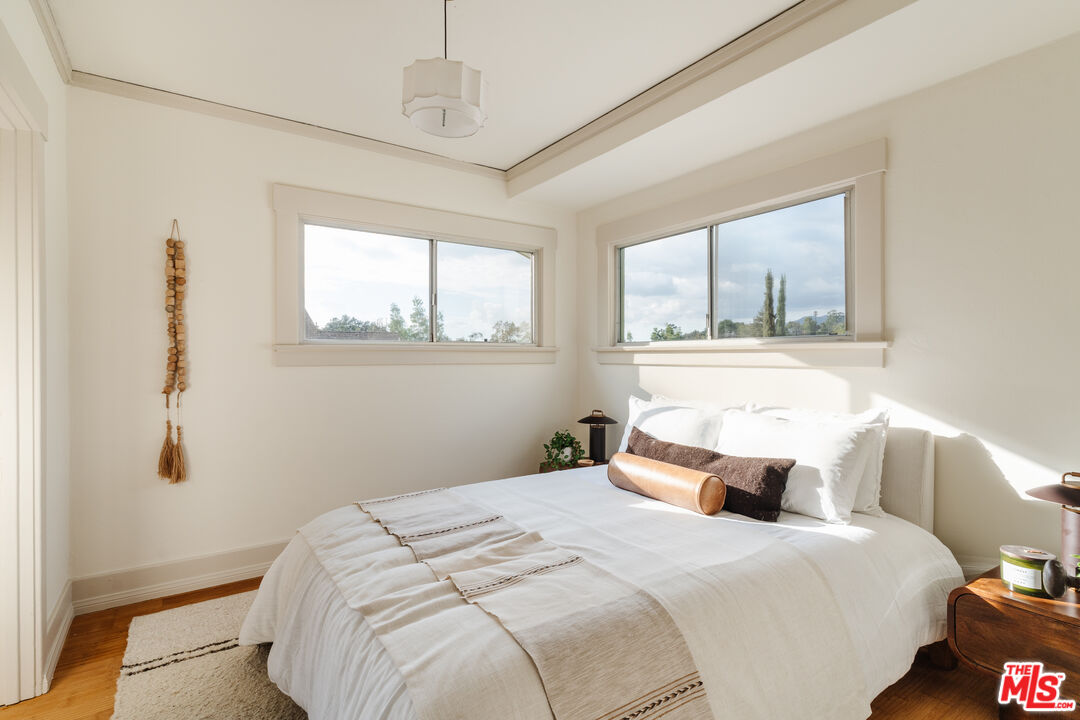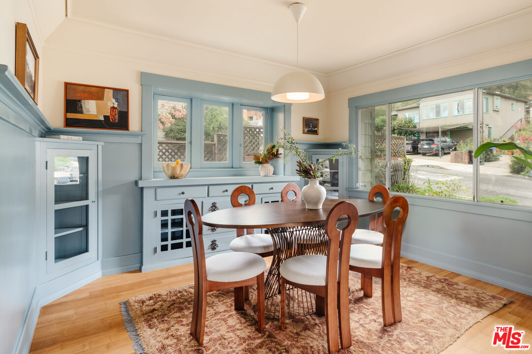 In the heart of small-town Eagle Rock, tucked among its heritage homes and neighborly streets, lies this artist-owned Craftsman offering original charms and modern upgrades. A welcoming front porch overlooks a lush drought-tolerant garden, its sunflowers setting the tone before you even step inside. Warm wood floors and multiple living spaces greet you, along with a formal dining room featuring original custom cabinetry, draped in Farrow & Ball tones. The kitchen carries that character forward, painted in a buttery F&B yellow that makes the entire space glow as it opens onto the breakfast room and its sun-washed views. Upstairs, two brightly lit bedrooms share lovely views and a charming Jack and Jill bath, trimmed in crisp white and blue tile. Craftsman millwork, doors, trim, and hardware all remain intact here. The enormous primary suite on the lower level feels like a quiet refuge, complete with vaulted ceilings, its own fireplace, and french doors leading out to the spacious entertainer's backyard. Its walk-in closet and full bath offer a serene escape with jacuzzi tub and shower, clerestory windows, and blue stained-glass panels. Tucked away nearby are the private study/office and full laundry room, adding everyday ease and convenience. Out back, enjoy evening gatherings under twinkle lights draped across the recently added pergola (2021). The spacious lower yard and fire pit offer a private space for play or relaxation, as well as plenty of room for a pool! Major updates such as the new roof (2020), 200-amp panel, newly refinished hardwood floors, copper & ABS plumbing make this home turnkey-ready! A lovely bonus standing height crawl space is ready to become your next workshop or darkroom. All in coveted Rockdale Visual & Performing Arts Magnet and moments from Highland Park and Pasadena as well as loads of great restaurants, bars, and entertainment including Dunsmoor, Joy, Casa Bianca, Vidiots Theatre, Bub & Grandma's, and Capri Club just to name a few. This unspoilt yet remodeled Eagle Rock gem provides a perfect blend of historical textures with all the comforts and updates of modern living. Welcome home!