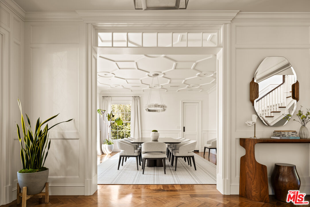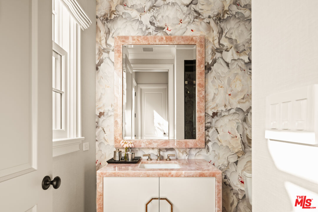 Tucked away in the highly sought-after Lower Riviera of Pacific Palisades, this exceptional traditional estate captures the spirit of understated luxury through impeccable craftsmanship, refined details, and a calm, sophisticated atmosphere. From timeless finishes to thoughtfully executed upgrades and distinctive architectural windows, the home has been designed with both beauty and livability in mind.Spanning three expansive levels, the residence offers a natural sense of flow and balance. On the main floor, bathrooms accented with amethyst and rose quartz bring a subtle, tranquil elegance. Formal spaces include a richly detailed study and a graceful dining room, complemented by a hidden butler's pantry and separate wet barideal for both intimate dinners and larger gatherings.At the center of the home, the chef's kitchen stands out with its honed marble hood, top-tier appliances, and a welcoming breakfast nook. Just beyond, the family room opens effortlessly to a secluded outdoor setting featuring a bluestone terrace, pool and spa with automated cover, built-in BBQ, wood-fired pizza oven, and mature hedging for privacy.Natural light pours into the upper level through skylights, where two ensuite bedrooms and a versatile bonus roomcomplete with custom wallpaper and whiteboard wallsoffer flexibility for work, study, or play. The primary suite is a true retreat, highlighted by vaulted ceilings, linen-upholstered walls, a statement fireplace, motorized blackout shades, and a private balcony with subtle ocean glimpses. Its spa-like bath features hand-laid Michael Aram floral marble, heated floors, dual walk-in closets, and a dual-suite configuration with individual Japanese toilets.The lower level is designed for both relaxation and recreation, showcasing a cutting-edge home theater with a full-scale screen, cinema-quality projection, custom seating, and rich black mohair walls. This floor also includes a generous flex space, an additional bedroom, a custom wine cellar, and a fully equipped gym with mirrored walls and a ballet barre.Additional features include a comprehensive security system, Crestron whole-home audio and video integration, three retractable outdoor awnings, a vegetable garden, and completed post-fire inspection with air-quality remediation for added reassurance.Blending classic elegance with modern comfort, this home presents a rare opportunity to live in one of Los Angeles' premier neighborhoods, just moments from the renowned Riviera Country Club. Offered partially furnished, it includes a thoughtfully curated selection of designer and custom furnishings throughout.