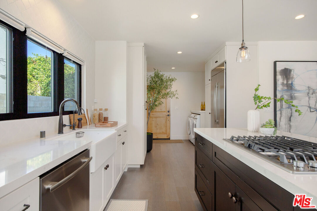 Welcome to 1238 Carmona Ave., a stunningly renovated Spanish Colonial Revival home in the highly desirable Wilshire-Vista neighborhood. This two-story residence, with three bedrooms and three and a half bathrooms, masterfully blends classic architectural charm with a soft, modern interior, offering a truly sophisticated living experience.Step through the foyer into a high-ceilinged living room that flows seamlessly into the open-concept dining and kitchen area. This space is perfect for both formal gatherings and casual meals, featuring state-of-the-art appliances and plenty of room for all your culinary endeavors. The home's second floor is a private retreat. The exquisite primary bedroom suite is a true sanctuary, complete with a spa-like primary bathroom designed for ultimate relaxation. Each of the remaining bedrooms also boasts its own en-suite bathroom, providing comfort and privacy for family and guests. Outside, a sizable rear yard awaits, offering the perfect canvas for your gardening aspirations or for hosting unforgettable gatherings. The two-car garage presents a fantastic opportunity for a potential Accessory Dwelling Unit (ADU), adding even more value to the property. The location is truly second to none. It's a convenient distance from places of worship and highly desirable schools. You can immerse yourself in the vibrant culture of the neighborhood, as The Grove, LACMA, Museum Row, and an array of shopping and dining options are all nearby. 1238 Carmona is minutes from Beverly Hills, West Hollywood, DTLA, Culver City and Century City.