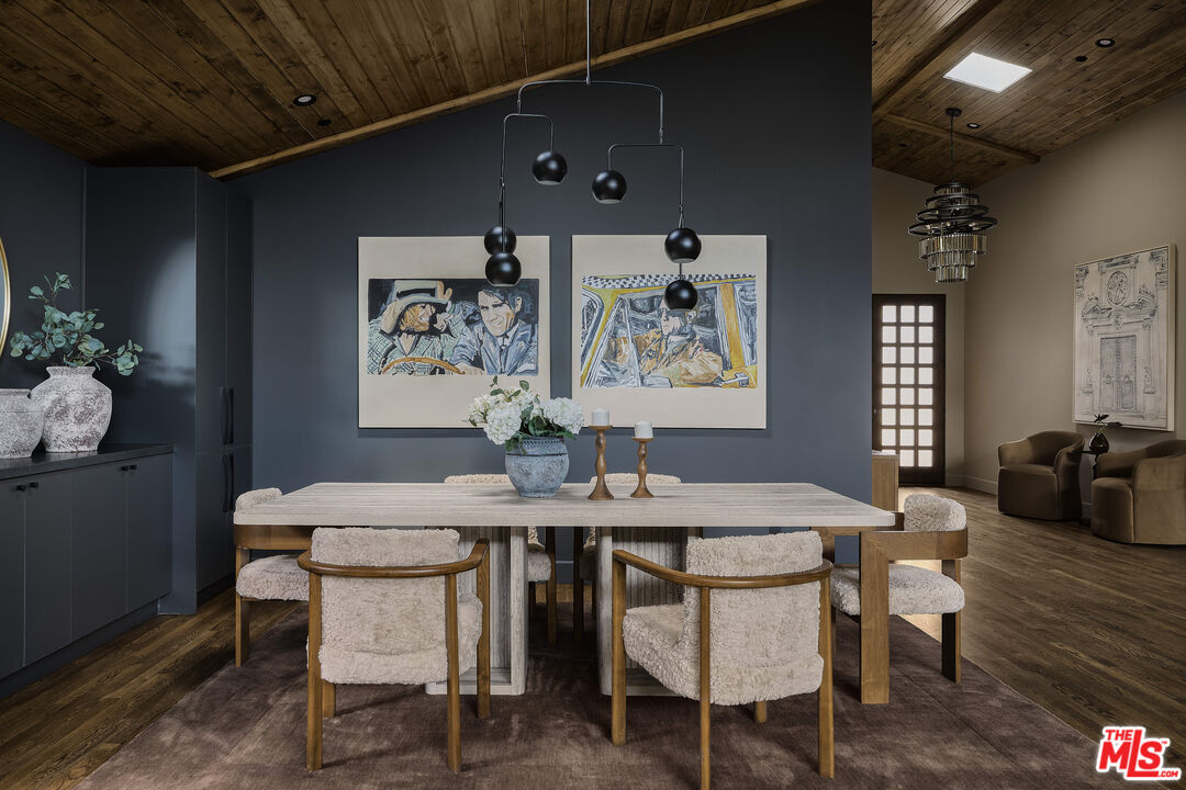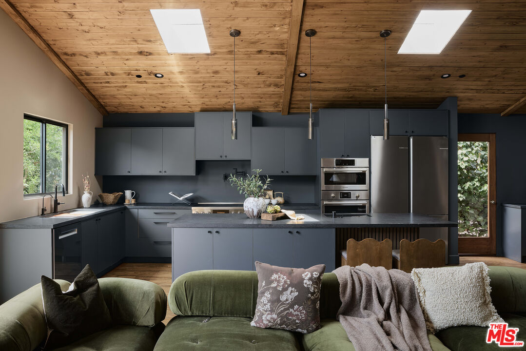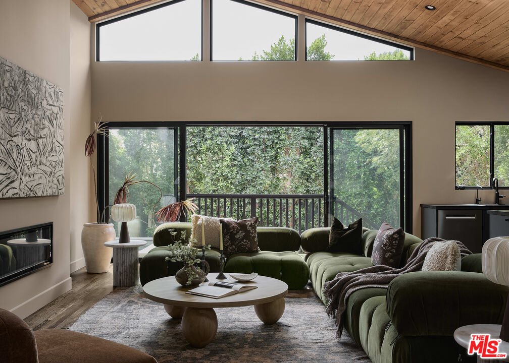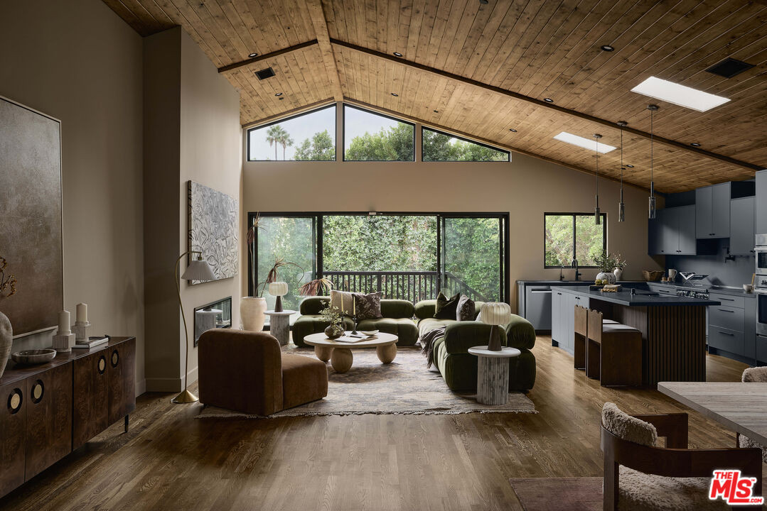 In the heart of Valley Village sits this designer home, crafted and reimagined by Plain Object, formerly known as Enko Design Group. Every inch of the property reflects thoughtful design and elevated living, blending natural textures with a modern California sensibility.The open-concept living space is framed by soaring wood-clad ceilings and walls of glass that bring in lush greenery. The custom kitchen pairs clean-lined cabinetry with stone counters and integrated appliances, creating a seamless flow into the dining and lounge areas. Anchoring the space is an electric fireplace, adding warmth and balance to the expansive great room.The main residence features three bedrooms and three-and-a-half baths, each layered with rich materiality--hand-set tile, brass fixtures, and a striking mix of wood and stone. The primary suite feels like a retreat, with a spa-level bathroom finished in deep green tile, dual vanities, and a rainfall shower.An attached junior ADU adds an additional bedroom and full bath, coming in just under 400 square feet. This flexible space offers countless possibilities--use it as a second primary suite, a private studio, guest quarters, or an income-generating rental.The home is outfitted with updated plumbing, electrical, and foundation, plus a new roof and water heater. Two-inch white oak floors run throughout, lending both character and durability. Outdoors, a gravel-lined entry gives way to curated landscaping and a private backyard deck. The property includes two parking spaces, an above-ground pool/spa, and a separate laundry room.Located moments from the Sportsman's Lodge, Val Surf, Oy Bar, and Coffee Fix, 12406 La Maida is surrounded by a true sense of community--neighbors that look out for one another, in one of the rare neighborhoods in LA where that still exists.This is more than a home; it's a statement piece of design waiting for its next chapter.