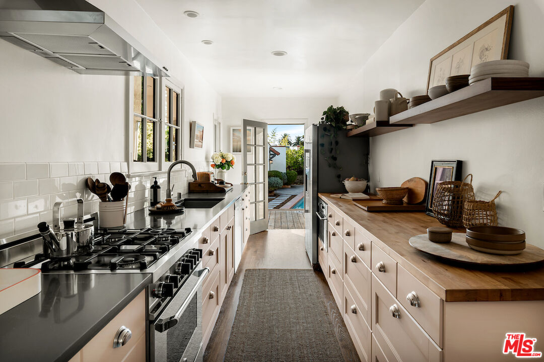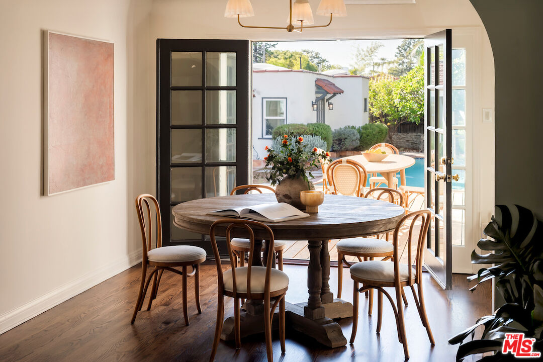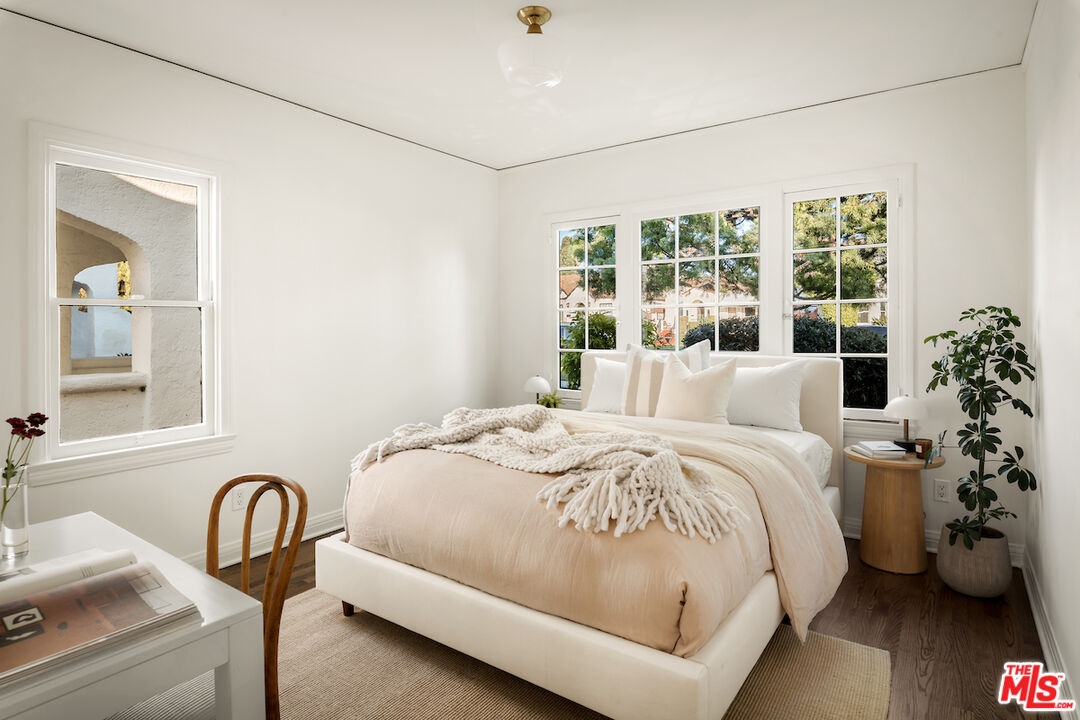 Location, Location, Location! Nestled in the heart of desirable Wilshire Vista, this absolutely charming English cottage style residence offers the perfect blend of character, comfort, and lifestyle. The living room welcomes you with gorgeous hardwood floors, coved ceilings, and a rare Bachelder fireplace, a stunning focal point that showcases timeless craftsmanship of the home. The 2 bed, 2 bath main house is complemented by a 1 bed, 1 bath pool cabana ideal private retreat for guests, a home office, or creative space. French doors off the living room open to your own oasis: a large lap pool with spa and fountains surrounded by lush landscaping. A spacious deck overlooking the pool sets the stage for outdoor dining, entertaining, or simply relaxing in the California sun. Situated on an expansive 7,448 sq. ft. lot, there's plenty of room to enjoy both indoor and outdoor living. All this, while being just one mile from LACMA, world-class dining, Equinox, LA Fitness, and only minutes to The Grove, Trader Joe's, Whole Foods, and Erewhon. This home is the perfect mix of historic charm and modern convenience in one of Los Angeles's most central and sought-after neighborhoods.