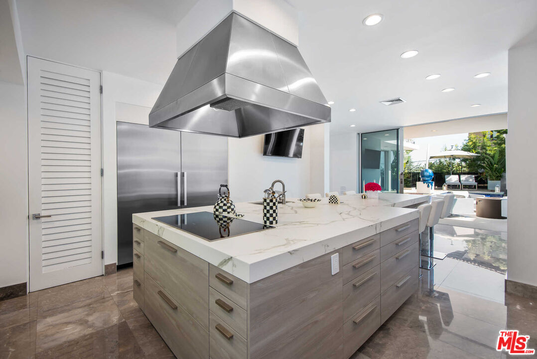 Experience the epitome of luxurious living, nestled adjacent to some of the wealthiest individuals in the world amidst a prestigious enclave that includes Beverly Hills and Holmby Hills. This exquisitely designer-furnished contemporary residence is a remarkable architectural triumph that rises gracefully above the city lights, offering breathtaking panoramic views.This opulent masterpiece features expansive living spaces with unparalleled finishes, all thoughtfully designed for seamless entertaining. The open floor plan boasts soaring ceilings and expansive sliding glass walls that integrate indoor and outdoor spaces, leading to resort-style amenities, including a magnificent pool, spa, and multiple entertainer's terraces embellished with cascading waterfalls.A grand great room, anchored by a sophisticated fireplace, transitions effortlessly to a fully equipped bar complete with top-of-the-line temperature-controlled wine storage. This space flows into a stunning dining room and a state-of-the-art chef's kitchen, outfitted with Miele appliances and Poggenpohl cabinetry, perfect for culinary enthusiasts.The lavish primary suite offers a private terrace with captivating views, extensive showroom-quality closets, and exquisite dual bathrooms. Accompanying this are three generously sized VIP guest suites, a cutting-edge media room with sweeping vistas, and a fully equipped gym featuring a dry sauna, all contributing to this extraordinary high-tech smart home retreat. OPTION TO BUY NOW AND FINANCE LATER WHEN INTEREST RATES DECREASE. THE SELLER IS OPEN TO LEASING THE PROPERTY FULLY FURNISHED, OFFERING A UNIQUE OPPORTUNITY for a sophisticated lifestyle IN ONE OF THE MOST SOUGHT-AFTER LOCATIONS. IMMEDIATE OCCUPANCY AVAILABLE.