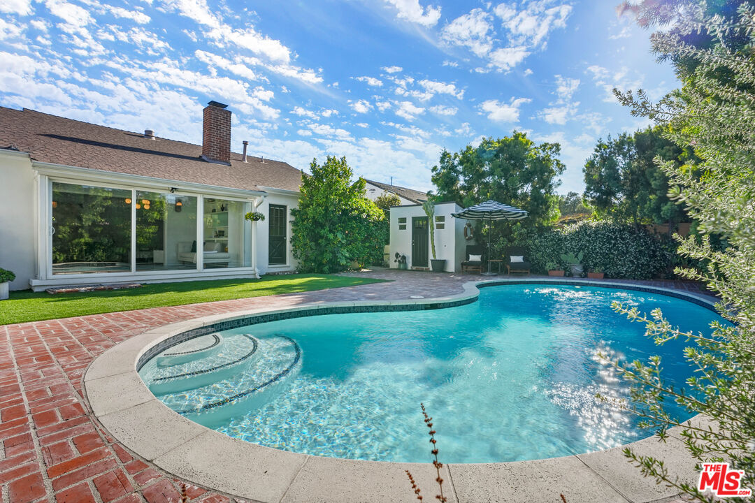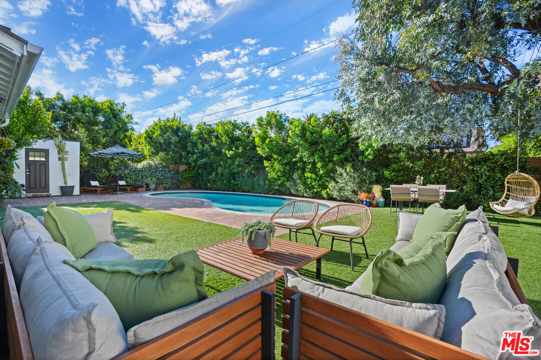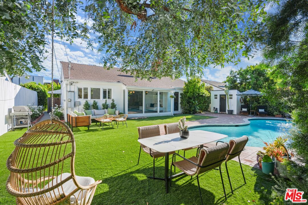 Inspired style, celebrating famed California Mid-Century Ranch design is the hallmark of this exceptional offering in Studio City's acclaimed Beeman Park. Beautifully crowning a verdant, 7,400 sq.ft lot the home resides in divine harmony with its organic environment of mature trees and abundant greenery. Hip, relaxed, refined with a stylistic identity all its own, the property is a sublime urban oasis. The exterior presentation with the quintessential white picket fence offers wonderful curb appeal and bids a warm welcome. In recognized Mid-Century style, the free flowing layout of interior living spaces has minimal separation, perfect for easy, relaxed contemporary living and entertaining. Wood floors grace the living areas. Baths feature fine lighting, fixtures and finishes. The eat in kitchen is artfully adorned with an array of stainless steel appliances. Walls of glass bring the outdoors in and give way to an idyllic, private backyard that embodies the coveted Southern California lifestyle of endless al fresco leisure and limitless outdoor entertaining. Replete with easy maintenance turfed lawn, sparkling pool, separate outdoor pool bath and shower, and brick dining and lounging patios, it becomes the ideal venue for warm, relaxed poolside lounging by day; cool, lavish gatherings by night. Three bedrooms plus office/Jr bedroom including a lux second story primary suite round out the comfortable accommodation for family and guests. Located on an idyllic, picturesque tree lined cul-de-sac with proximity to major film and TV studios, and just moments from the Studio City Rec Center and library, beloved Beeman Park, the shops at Sportsman Lodge, and the chic shopping and dining district along famed Ventura Blvd. This unique residence with a timeless style and enduring appeal is the place where you want to reside. Welcome!