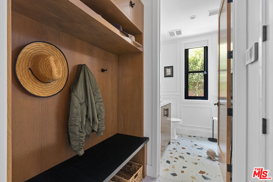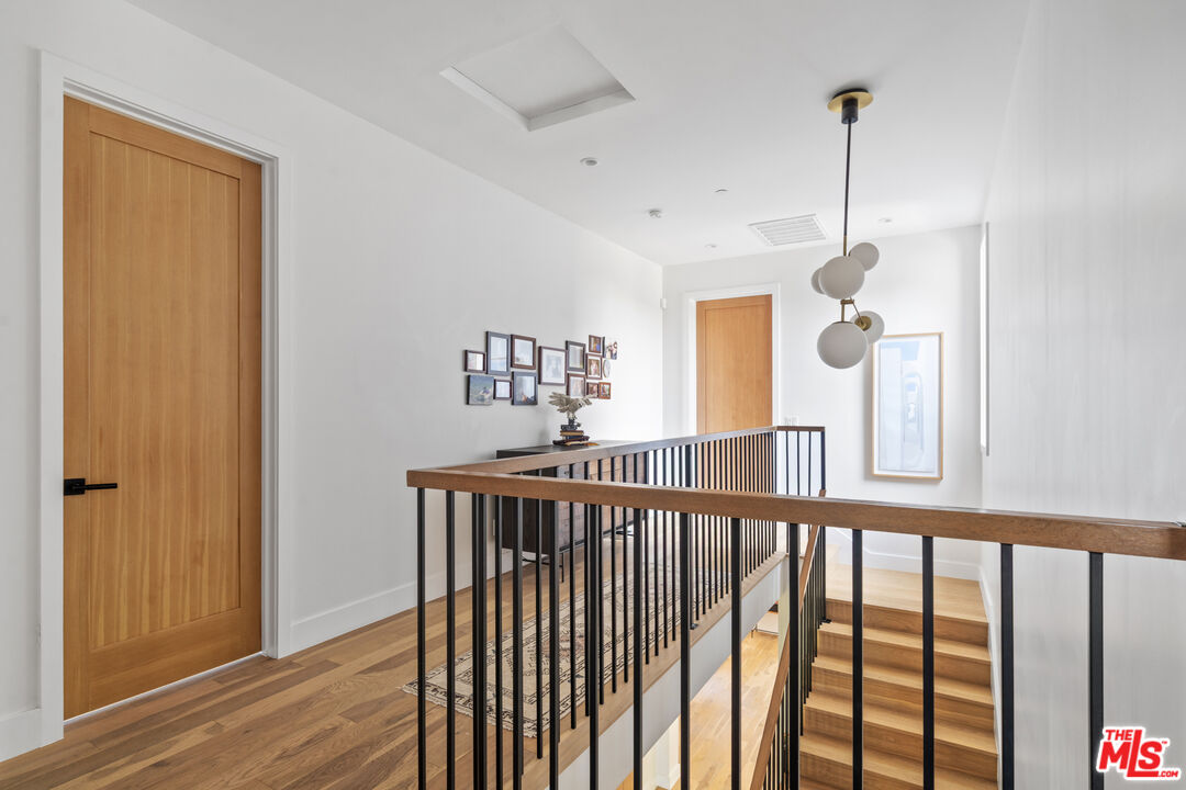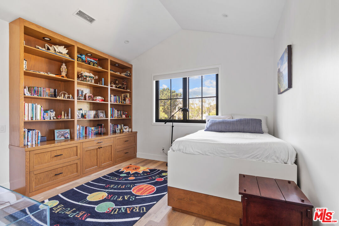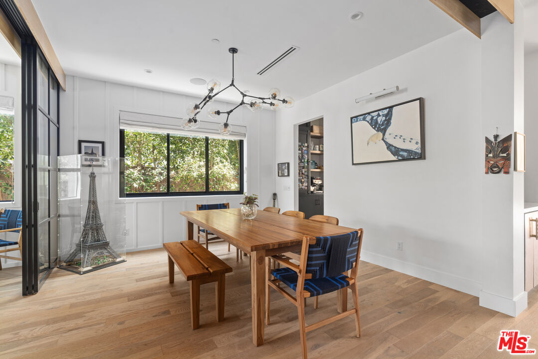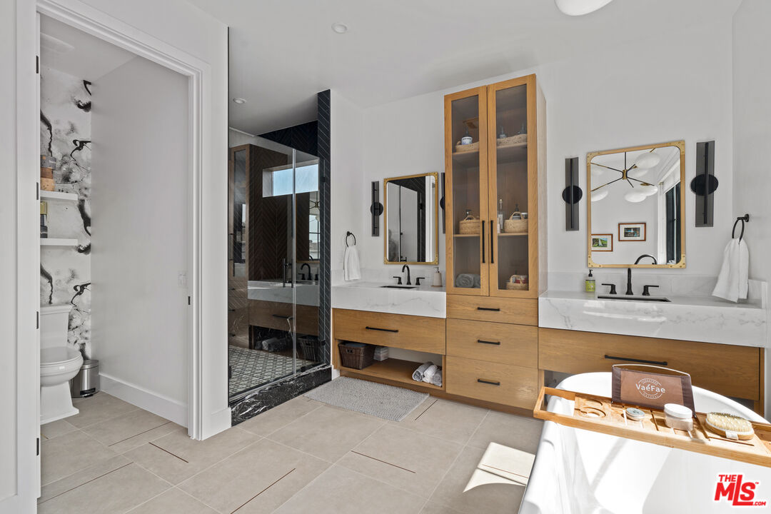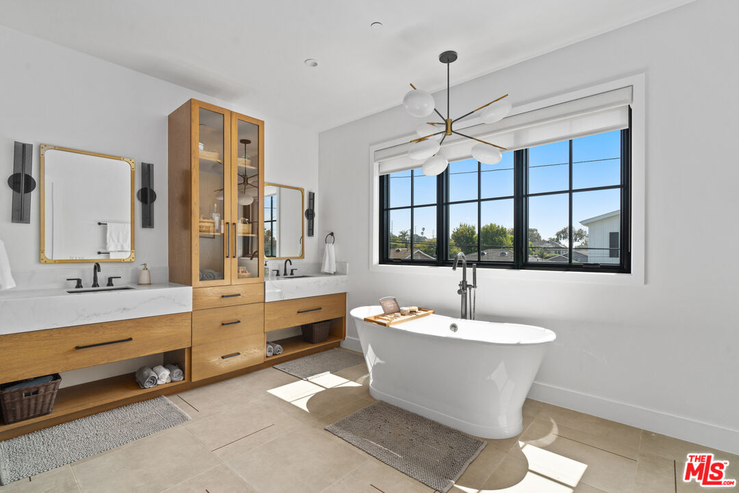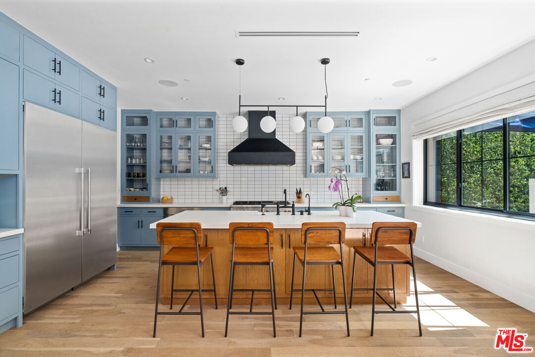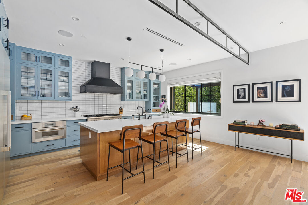 Built in 2020, this 5-bedroom, 5-bathroom residence perfectly blends modern elegance, functionality, and comfort in one of the Westside's most desirable neighborhoods. From the moment you arrive, you're welcomed by a manicured front garden, custom wood entry gate, privacy hedges, and secure gates that frame the home beautifully. A peaceful walkway through the landscaped garden leads to your front door, setting the tone for the serene lifestyle inside. Step inside to an expansive open layout filled with natural light from curated windows throughout. The downstairs bedroom has been transformed into a glass-walled office, creating a bright, inspiring space to work. The living room is anchored by custom built-ins and opens through large bifold doors to a backyard designed for California living. The chef's kitchen is a showstopper, featuring Thermador appliances, a walk-in pantry, butler's area with coffee station, and abundant storage to create an entertainer's dream. Outside, the backyard boasts a 26' x 14' swimming pool with spa, a sleek deck, multiple fire pit areas, and a full outdoor BBQ station. Owned solar panels add energy efficiency and utility savings and include a battery backup that will allow you to live off the grid for over 24 hours, find two spacious en suite guest bedrooms and the luxurious primary suite complete with a huge walk-in closet and spa-quality bath. This home offers the perfect balance of modern sophistication and family-friendly warmth, all in the heart of North Mar Vista.
