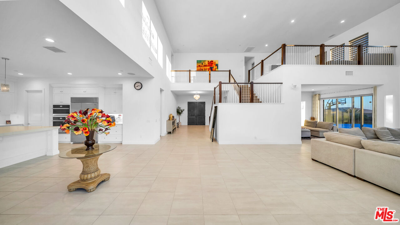 An Extraordinary Estate in Porter Ranch's Prestigious Ridge Collection. Perched high in the exclusive, guard-gated hills of Porter Ranch, this nearly new architectural masterpiece offers an elite level of luxury living with beautiful Sunset and Hillside views. Set on a one-of-a-kind, over 20,000 sq ft flat lot, this residence boasts an unrivaled resort-style backyard designed for both grand entertaining and everyday indulgence. Outdoors, you'll find a FULL BASKETBALL court, a sparkling pool & spa with cascading fountains, a fully equipped outdoor BBQ, a covered lounge patio, and a cozy fire pit area with seating for up to ten, perfect for unforgettable gatherings under the stars. Inside, the inviting entry and extended foyer lead past a sophisticated dining room into the expansive great room and casual dining area, each showcasing views of the luxurious outdoor living space. The gourmet chef's kitchen features a massive quartz-stone island with breakfast bar, abundant cabinetry, premium appliances, and a spacious walk-in pantry. The enormous primary suite is a true sanctuary, highlighted by elegant coffered ceilings, a palatial walk-in closet, and a spa-inspired bath with dual vanities, a soaking tub, a luxe glass-enclosed shower, and a private water closet. A convenient lower-level bedroom with ensuite bath is ideal for guests, while upstairs offers four additional spacious bedrooms, a light-filled loft, and a well-appointed laundry room. The 3-car garage provides ample storage and convenience. All of this is located moments from the top-rated Porter Ranch Community School (TK8), Sierra Canyon School, upscale dining, shopping, and the brand-new 50-acre Porter Ranch Park. Move-in ready NO NEED TO WAIT FOR BUILD OUT! Designed to impress this is more than a home, it's a lifestyle statement. Click the VIRTUAL TOUR link for a full video.