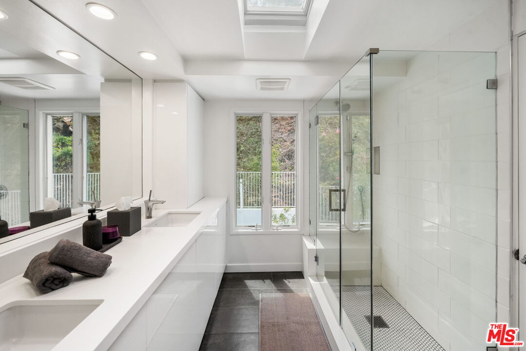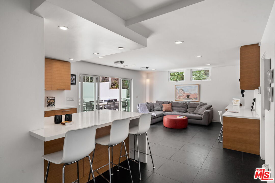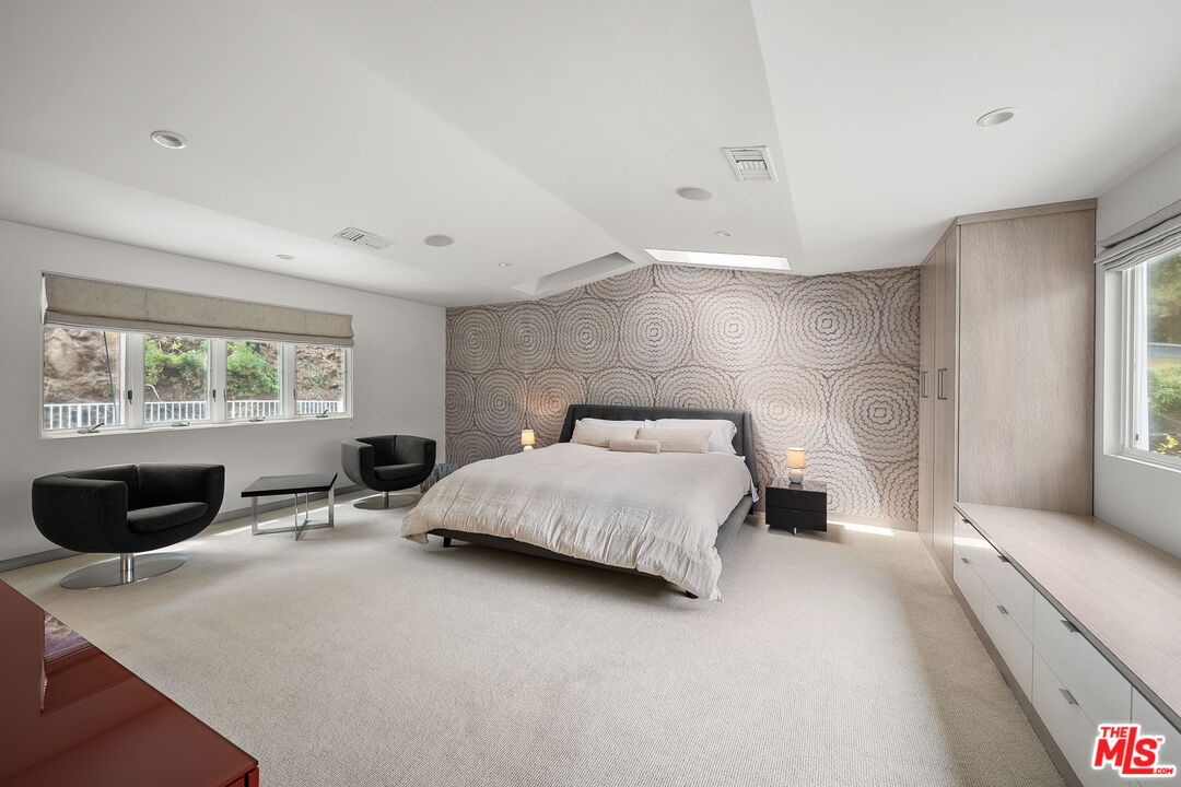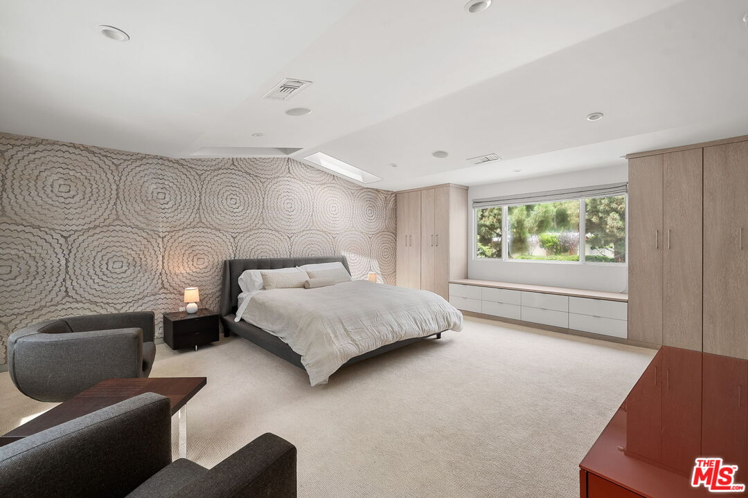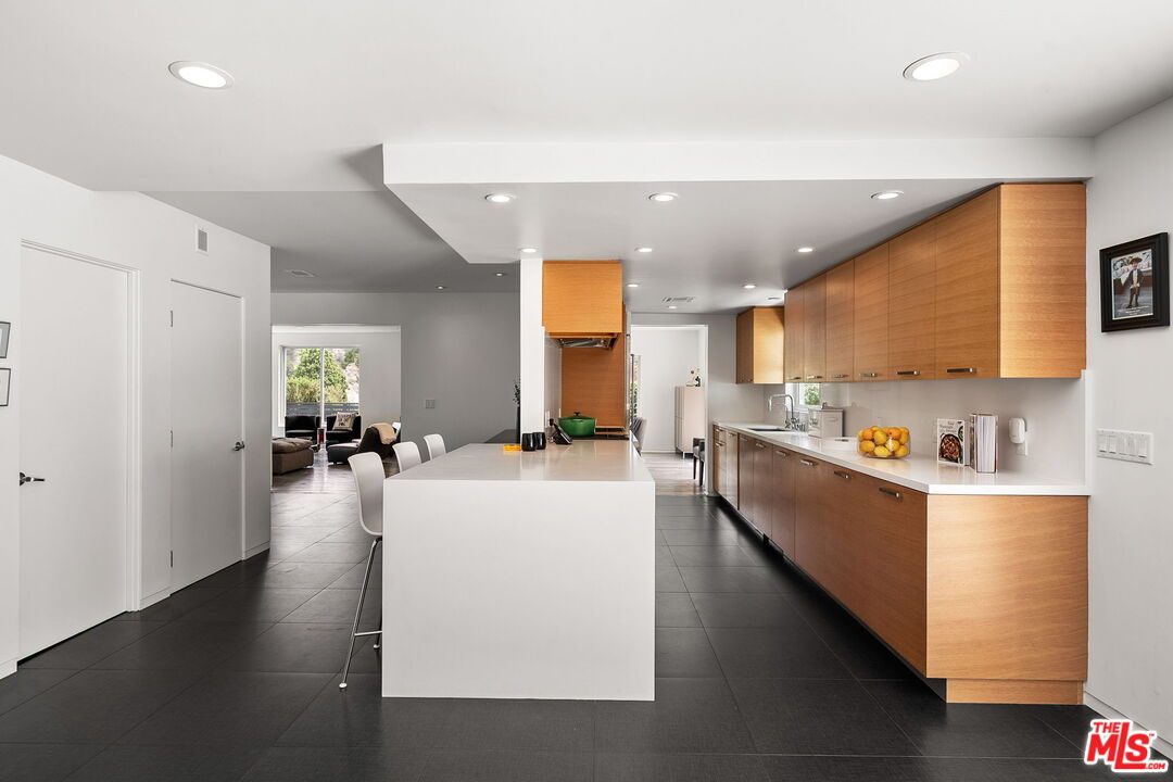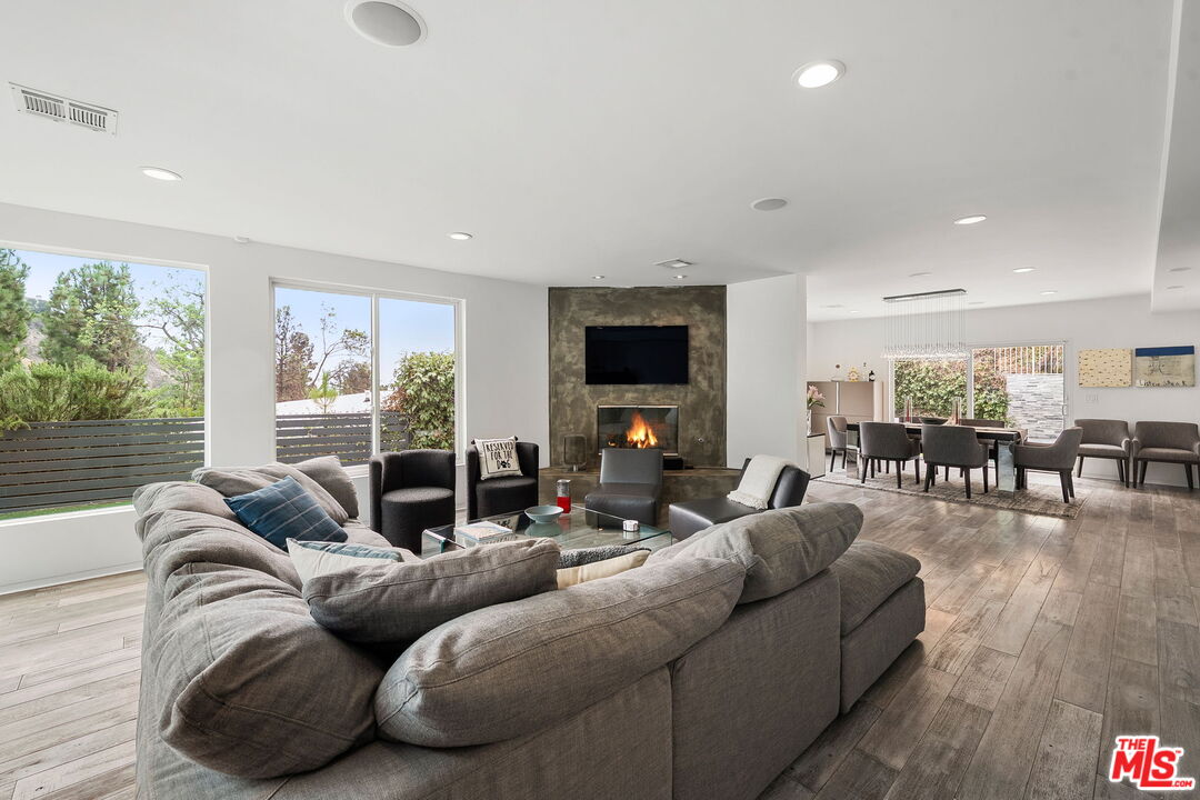 Welcome to this beautifully updated 4-bedroom, 3-bathroom contemporary residence, ideally situated in the heart of Pacific Palisades. This home combines refined modern design with a relaxed California comfort with an exceptional indoor-outdoor living experience. The property features a spacious open-concept floor plan with a casual sitting room and an expansive living room perfect for both entertaining and everyday living. The modern kitchen is appointed with high-end Wolf and Subzero appliances, clean lines, and seamless flow to the adjacent dining and living areas. Upstairs, you will enjoy partial ocean and vineyard views. The home has been fully remediated and meticulously maintained after surviving the recent wildfire, offering peace of mind alongside contemporary style. The primary suite includes custom California Closets, adding both elegance and functionality. A fully renovated garage, also outfitted with a California Closets storage systems, provides an organized and versatile space to meet a variety of needs. With four well-proportioned bedrooms and three modern baths, all with Toto toilets, this home offers flexibility and comfort for families or those seeking space to live and work. Gorgeous outdoor space with built in seating, a fire pit and a large saltwater pool sits alongside a fitted outdoor kitchen with a BBQ and Ooni Pizza oven. Do not miss this rare opportunity to own a turn-key home that balances modern amenities, resilience, and the best of Palisades living.