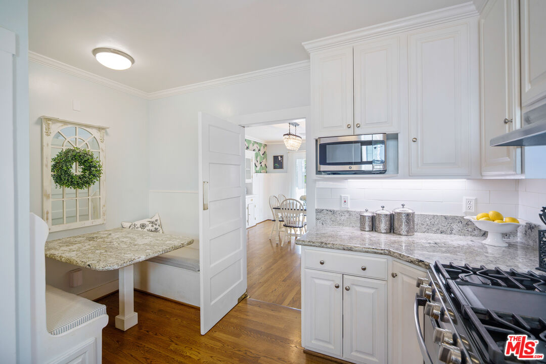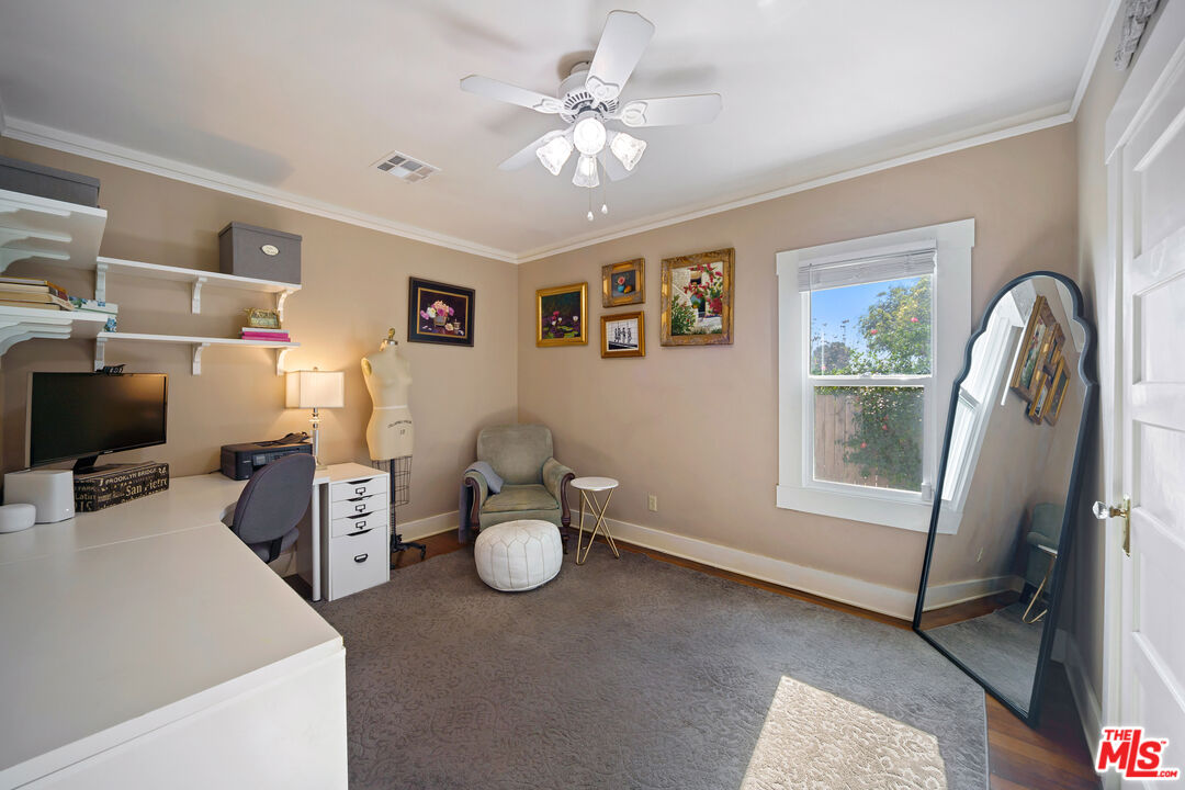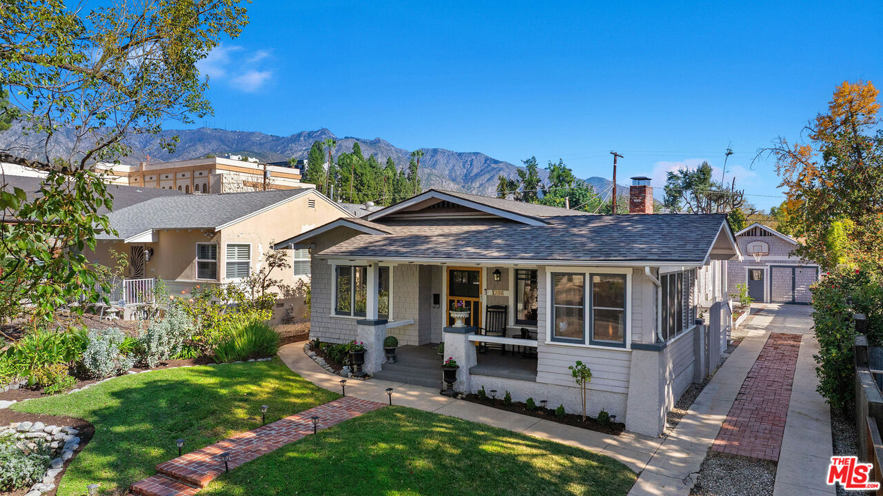 Brigden Ranch Craftsman full of charm and warmth, ideally located on a serene, tree-lined street framed by the San Gabriel Mountains. This 4-bedroom, 2-bath home blends enduring character with thoughtful modern upgrades. An inviting covered front porch sets the tone, leading into a warm and welcoming living room featuring a classic brick fireplace, refinished oak hardwood floors, crown molding, and abundant natural light. The floor plan flows seamlessly into a formal dining room with original built-ins and a remodeled gourmet kitchen showcasing white cabinetry, granite countertops, stainless-steel appliances, and a custom banquette. A private and extraordinary study off the living room, flooded with sunlight, creates the ideal home office. The primary bedroom offers a walk-in closet and a beautifully updated bath with designer finishes. Three additional bright secondary bedrooms and a stylish guest bath with Carrera marble, an oversized jetted Whirlpool tub, modern shower complete the interior, and a whole-house fan provides efficient cooling for comfortable summer living throughout the home. The rear covered patio features a built-in misting system that overlooks a lush, private, fenced backyard with citrus trees and mountain views, creating an ideal setting for both entertaining and relaxing. The property also offers abundant storage, a LifeSource water filtration system, and a flourishing vegetable garden. The rear garage provides approximately 450 sq. ft. of finished space with even more storage. Enjoy close proximity to Lavender & Honey, Millie's Cafe, Woon, Bacchus, Italian Deli Co., Bloomfield Creamery, Connal's, 786 Degrees Pizza, Deluxe 1717, and other local favorites, along with easy access to EF International Language Campus, Huntington Library, Old Town, South Lake Ave, Paseo, Rose Bowl, Hastings Ranch, and the 210/134 freeways. This special home is an eternal gem in a fantastic location, close to all that Pasadena has to offer.
