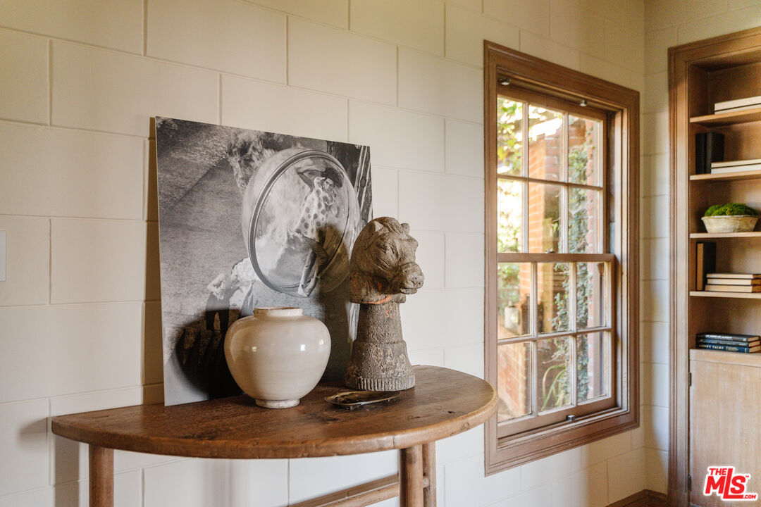 Nestled at the end of a quiet cul-de-sac north of Sunset Boulevard, this one-of-a-kind Country Colonial Revival estate embodies Beverly Hills charm, privacy, and history. Originally built in 1939 and set behind gates on a rare promontory lot of approximately 18,853 square feet, this enchanting property offers sweeping views of the Century City skyline and a serene, lush garden setting.A long brick-paved driveway leads to the 3,411-square-foot residence, offering 5 bedrooms and 4 baths. This magical retreat was the personal estate and creative studio of iconic fashion photographer Melvin Sokolsky for nearly 50 years. Its provenance and character shine throughout from the handcrafted brick facade to rich interiors featuring imported Sotios tiles from Mexico, wood-beamed ceilings, and classic French tile flooring on the lower level. A gracious foyer introduces the main living spaces: an elegant living room with fireplace and built-ins, a warm media/sitting room, a formal dining room, and a rustic farmhouse kitchen appointed with a Garland range, Traulsen commercial refrigerator, LG dishwasher, artisanal wood counters, and open shelving. French doors and picture windows frame greenery and city vistas, flowing out to an expansive wraparound deck for effortless indoor-outdoor living. The lower level serves as the bedroom wing, anchored by a serene primary suite with dressing area and garden access, along with additional secondary bedrooms. This level also features a cozy library, mud room, and generous storage designed for day-to-day functionality while preserving privacy and tranquility. Sotios tiles, classic French tile floors, wood-beamed ceilings, two fireplaces, and brick hardscape underscore the timeless character and warmth of the home. The rear grounds offer a tranquil outdoor oasis, with multiple lounging and entertaining areas surrounded by mature landscaping and dramatic views. A sparkling pool and sun deck are perfectly positioned to capture the natural beauty of the hillside setting ideal for hosting gatherings or enjoying quiet moments under the California sun. Just moments from world-class dining and luxury shopping on Rodeo Drive, this gated Beverly Hills sanctuary offers privacy, pedigree, and an unparalleled address. Whether cherished as-is or reimagined into a new legacy estate, 1277 Leona Drive represents a rare opportunity in one of the most exclusive neighborhoods in the world.