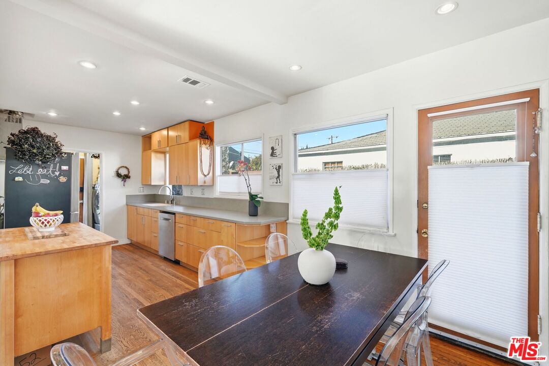 WELCOME TO THE JUNGALOW! First time on the market since 1997, this one-of-a-kind ZEN beachinspired compound is a rare find anywhere! Especially adjacent to Marina Del Rey, one of LA's most desirable neighborhoods. You don't come across this sense of privacy, spaciousness, community, and soulful indoor-outdoor living everyday. The home (on a southern facing corner lot) retains its original hardwood floors while blending seamlessly with thoughtful modern upgrades: sky lights, solar tubes, recessed lighting, central A/C and heating, upgraded electrical, new main gas line, newer roof (2007), tankless water heaters, and a Nest thermostat. The bathrooms have all been upgraded, including a primary bathroom with a built-in jacuzzi tub, creating a spa-like retreat. The den/play room is equipped with a sleeping loft and french doors which open to the back yard. The upgraded kitchen opens beautifully to the outdoors, while a wraparound backyard deck and eco-friendly artificial turf (green year-round and perfect for kids and pets) make entertaining and everyday living a joy.Designed in a horseshoe layout, the multiple structures maximize usable outdoor space and create an effortless flow between the home, backyard, and all additional living areas, an absolute epitome of indoor/outdoor Westside living. The outdoor spaces are nothing short of magical. A large open-air living room (with a living roof), lovingly referred to as "The Dojo", features a working fireplace, electricity, and overhead pendant lighting. Inspired by Southeast Asian pagodas and Central American palapas, it was thoughtfully built in 2004 to withstand SoCal winters and has never been affected by rain.Adding incredible flexibility are two detached structures: An outside studio with soaring ceilings, large closets and additional storage, skylight, and expansive Milgard glass windows and sliding doors, ideal for creative work, fitness, or quiet retreat. AND a full guest house/ADU complete with kitchenette, living room, spacious primary bedroom, bathroom with walk-in shower, its own tankless water heater, and wide pocket doors designed for wheelchair access and adaptive lifestyles.The lush front yard features decomposed granite, pavers, mature fruit trees and vines, and raised vegetable beds, with all-day southern-facing light, makes this a gardener's paradise. Another perk is the permit-only street parking which enhances peace of mind and guest parking.Perfectly positioned, the neighborhood is known for its wonderful neighbors, strong sense of community, schools and safety. It is moments away from parks, dining, grocery and health food stores, movie theaters, and elementary, middle, and high schools, a rare convenience for families. AND when the ocean calls, it's an easy and quick trip to the beach for sunset.This is not just a home, it's a lifestyle compound that blends a global sensibility, privacy, sustainability, and community in one of Los Angeles' most sought-after neighborhoods.