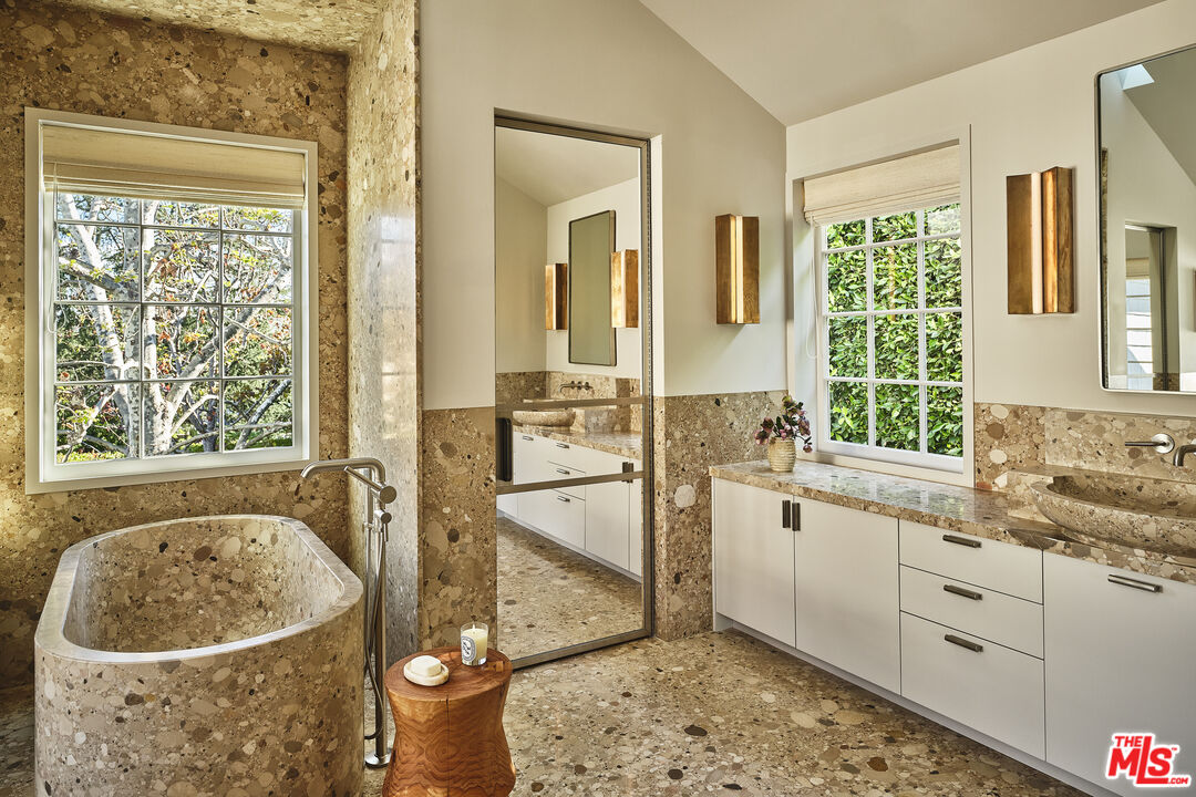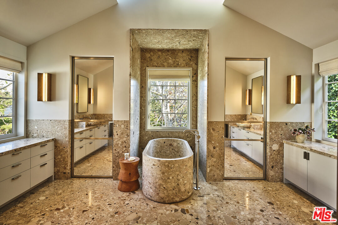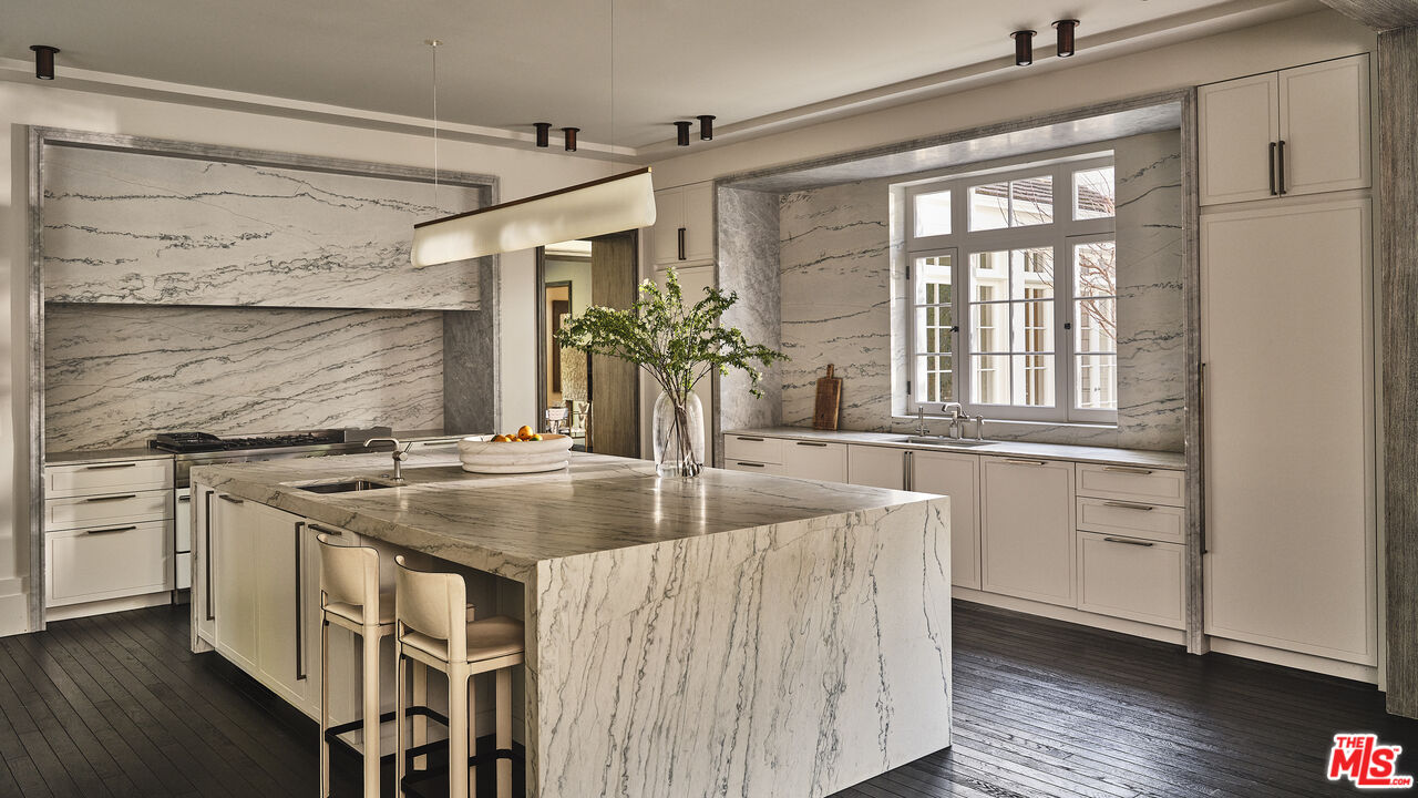 One of the most extraordinary properties to become available in Brentwood Park in quite some time. Widely published, extremely special, walled and gated Modern Traditional estate originally done by Thomas Proctor, the architect of some of the most beautiful homes ever built in Brentwood Park. Situated on a quiet street south of Sunset, in close proximity to the Brentwood Country Mart with captivating street presence, great sense of scale and light, the perfect floor plan and sun-filled gardens, this magical property recently underwent a complete top-to-bottom renovation by acclaimed designer, Kelly Wearstler, with no detail overlooked or expense spared, and the absolute finest of everything. Graceful, beautifully detailed grand scale formal entertaining rooms and fabulous "great room" consisting of fabulous cook's kitchen, breakfast area, family room and adjacent playroom/den that opens to outdoor living room with fireplace, park-like grassy yard, pool, spa, patios and detached guest house/gym/poolside cabana with fireplace and bar. Five-bedroom suites in the main house, including a sumptuous owner's suite with warm paneled walls, fireplace, lavish bath and two furniture grade walk-in closets. Other features and amenities include a large upstairs family room or office, movie theatre, two laundry rooms, full smart house system, security & cameras, extensive storage and oversized three-car garage. Set off the street, amidst beautiful gardens, this exquisite home done with integrity and quality is truly a feast for the senses and offers the very best Brentwood lifestyle.