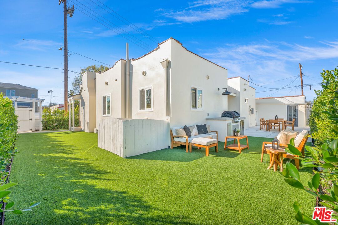 Welcome to this beautifully renovated single-family home in the heart of the highly desirable Mar Vista neighborhood of Los Angeles. Originally built in 1927 and newly renovated, this 3-bedroom, 2-bath residence blends timeless character with modern comfort and a relaxed California lifestyle. Offering approximately 1,553 square feet of living space on a 3,933 square foot corner lot, the home has been thoughtfully updated inside and out. The brand-new kitchen features new cabinetry, countertops, and appliances, including stove, dishwasher, vent hood, and garbage disposal, along with updated lighting and new flooring. Both bathrooms have been fully remodeled with new tubs, tile, vanities, mirrors, and fixtures. New vinyl flooring flows throughout the living areas, complemented by tile in the kitchen and bathrooms, and the home has been freshly painted inside and out. The primary suite is a true highlight and a rare find for the area, featuring two walk-in closets and a spacious en-suite bathroom with modern lighting, designed for comfort, functionality, and everyday ease. A renovated fireplace anchors the living room, while an indoor laundry room conveniently located near the kitchen adds to the home's practical layout. Double-pane windows, central heating and air, and a repaired roof complete the interior features. Outdoor spaces have been completely reimagined to create a low-maintenance, private retreat. The side yard and backyard connect seamlessly into one inviting outdoor area, featuring synthetic turf, a built-in BBQ with refrigerator and trash storage, and mature hedging that provides excellent privacy. The space is ideal for entertaining, relaxing, or enjoying indoor-outdoor living year-round. A detached one-car garage offers future ADU potential for guest space, a home office, or rental income (buyer to verify). The property includes a private driveway, parking at the garage, and ample street parking. A paid off leased solar system provides you with a low monthly energy cost. Located just minutes from freeway access, approximately two miles from the beach, and within walking distance to popular shops and restaurants along Venice Boulevard, the home offers a highly walkable and bike-friendly Westside lifestyle. Nearby schools are highly rated per public sources, and proximity to Silicon Beach and major employment centers adds to the home's appeal. A rare opportunity to own a turnkey, fully renovated home offering style, function, and location in one of the Westside's most sought-after neighborhoods.
