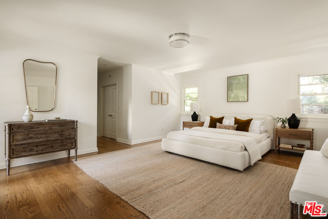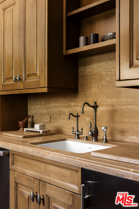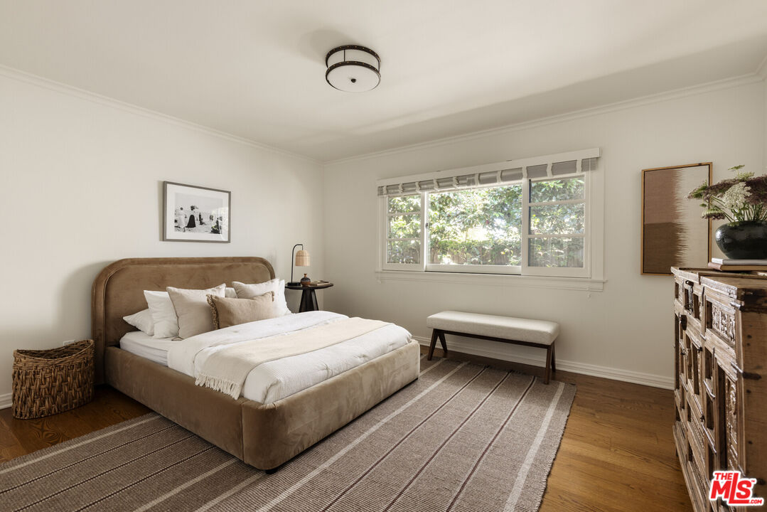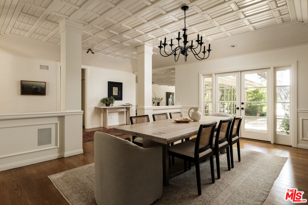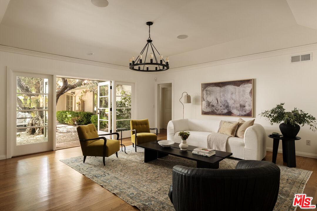 Set on a half-acre lot just moments from the Riviera Country Club, 1296 Capri Drive is a single-story estate that fuses European provenance with a thoughtful, full-scale renovation rooted in craftsmanship, indoor-outdoor flow, and connection to nature. A gated entry opens to a serene front courtyard with an outdoor fireplace, framed by mature plantings. An antique bronze and glass front door opens to expansive interiors where every room connects to the surrounding gardens. Throughout the home, old-world elements include 15th-century Italian doors from Milan, a carved Louis XV marble fireplace, and two antique French stone fountains that define the courtyard and anchor the backyard. The floor plan is organized into two distinct wings. One dedicated to the private living quarters, including the primary suite, which opens to the gardens and features dual bathrooms with a smart toilet, dry sauna, and two walk-in closets. Three additional en-suite bedrooms complete this side of the home. The opposite wing is designed for entertaining, centered around a den with a built-in bar, surround sound, antique terracotta flooring, and a climate-controlled wine wall. The main living room features a carved marble fireplace and vaulted, beamed ceilings that invite natural light throughout the day. A full wall of French doors opens to the gardens, reinforcing the seamless indoor-outdoor connection that defines the property. The kitchen was custom built by Cooper Pacific, centered around Italian feather walnut travertine counters and professional appliances that include a 64-inch Wolf range with French top and grill, two Wolf ovens (one steam), Le Cornue rotisserie, Sub-Zero refrigeration, dual Miele dishwashers, Wolf refrigerator drawers and ice maker, Irinox flash freezer and sous vide, and a built-in Natufia hydroponic grower. A walk-in pantry and separate china closet offer ample utility without compromising design. Outdoors, the landscaping is as functional as it is peaceful. Created by Garett Carlson of Landarc and Stephen Block of Inner Gardens, the grounds include a series of vegetable garden beds with lemon, orange, peach, plum, fig, mulberry, yuzu, Australian finger lime, and avocado trees. The soil and all plantings were organically treated. Additional highlights include a 2,500 bottle refrigerated wine cellar, rose-covered gazebo, built-in outdoor speakers, multiple 100-year-old Olive trees, and an area ideal for a dog run. The home features two new HVAC systems with HEPA filtration, all-new attic ducting and insulation, three water heaters (two of which are tankless), and security cameras.
