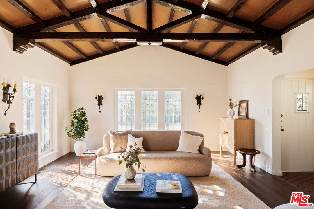 Description: Classic 1928 Spanish Revival Home in Wilshire Vista | Los Angeles. A neighborhood gem built in 1928, this one-of-a-kind Spanish Revival residence embodies the warmth, character, and craftsmanship that define classic Los Angeles architecture. Nestled on a tree-lined street in Wilshire Vista, this charming two-story home welcomes you with timeless elegance and modern comfort. The sun-filled living room features original beveled leaded-glass windows that flood the space with natural light. A soaring beamed cathedral ceiling with hand-stenciled detailing adds dramatic beauty, while a Batchelder-tiled fireplace creates the perfect gathering spot for cozy evenings. The house has been freshly renovated with new hardwood flooring and new windows throughout, blending the home's rich 1920s details with contemporary ease. With three large bedrooms, two full bathrooms and 2,719 sq. ft of living space, the home offers generous, light-filled spaces ideal for everyday living and entertaining. Handcrafted tilework and vintage fixtures put the artistry and the enduring charm of the 1920s front and center, making the house a truly special place to call home. Show all description