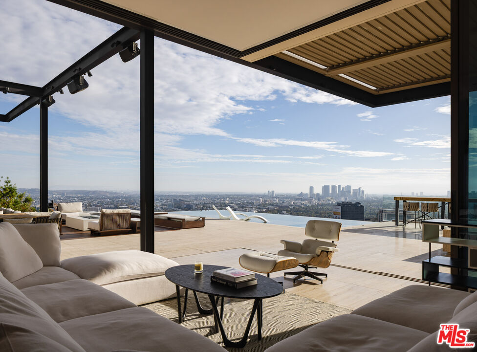 This extraordinary estate at 1305 Collingwood Place offers an unparalleled blend of sophistication and luxury. Spanning 11,800 square feet, the estate has 6 spacious bedrooms and 7 elegantly designed bathrooms, providing a haven of comfort and style. The home's design emphasizes seamless indoor-outdoor living, highlighted by an automatic retractable glass wall that opens to reveal breathtaking views from Downtown Los Angeles to the Pacific Ocean. The expansive deck serves as an outdoor oasis, complete with an infinity-edge pool, spa, fire feature and a barbecue area ideal for entertaining. The master suite, located on the second level, is a serene retreat offering a private balcony with sweeping views, luxurious soaking tub, and dual walk-in closets. Exclusive amenities abound throughout the estate, including a wine cellar, media room, state-of-the-art gym, as well as spa and sauna with salt walls for ultimate relaxation. The home is fully and seamlessly controlled by Savant Technology. Parking is effortlessly accommodated with a 20-foot, 3-car garage featuring a lift to accommodate up to 6 vehicles. With its blend of opulence and innovation, this estate offers a rare opportunity to experience the finest in Southern California living.